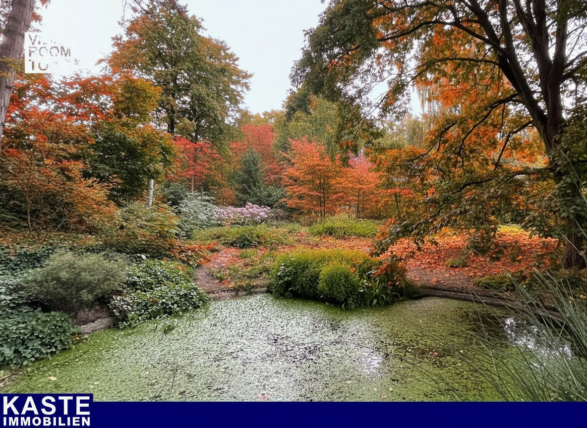 Grundstück & Außenbereich - Ca. 1.196 m² Grundstück in ruhiger Sackgassenlage - Naturnahe Waldrandlage mit hoher Privatsphäre - Weitläufiger Garten mit künstlich angelegtem See - Sonnige Terrasse mit Blick ins Grüne - Repräsentative Zuwegung - Freistehende Doppelgarage auf dem Grundstück