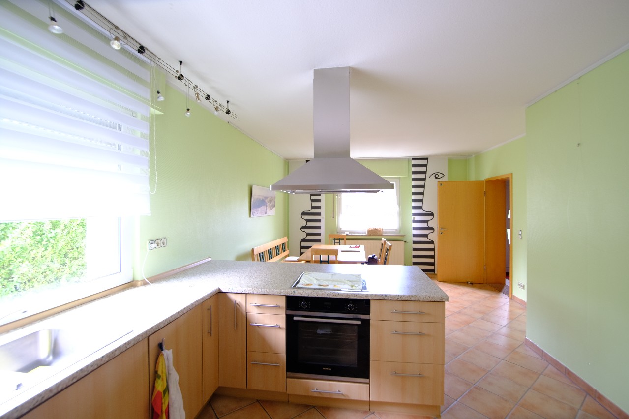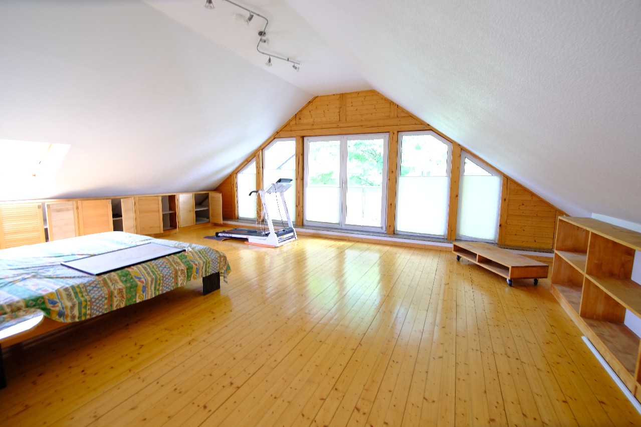 Wohnung II ist ca. 80 m² groß und befindet sich im gesamten Obergeschoss. Über den vorderen Eingang betreten Sie den Hausflur und gelangen über eine Treppe zur Wohnungsdiele und dort befinden sich ein kleiner Küchenbereich mit Essecke, ein großer Wohnraum von ca. 30 m² mit Zugang zur Loggia und Überblick über den gepflegten Gartenbereich. Ein helles Badezimmer mit Dusche, Handwaschbecken und WC und ein Schlafraum runden die Wohnung ab. Wenn Sie beide Wohnungen nutzen wollen, könnte dort weiterer Raum zu Schlafräumen umgebaut werden. Die Immobilie ist nur zum Teil unterkellert. Es befindet sich dort ein Heizungskeller, ein Vorratsraum mit Fenster und ein Abstellraum.