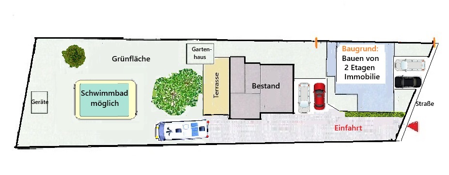 Weitere Bebauung zur Straßenseite ist möglich.