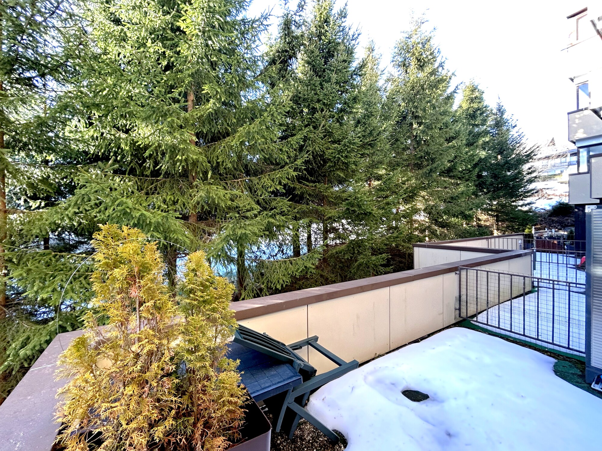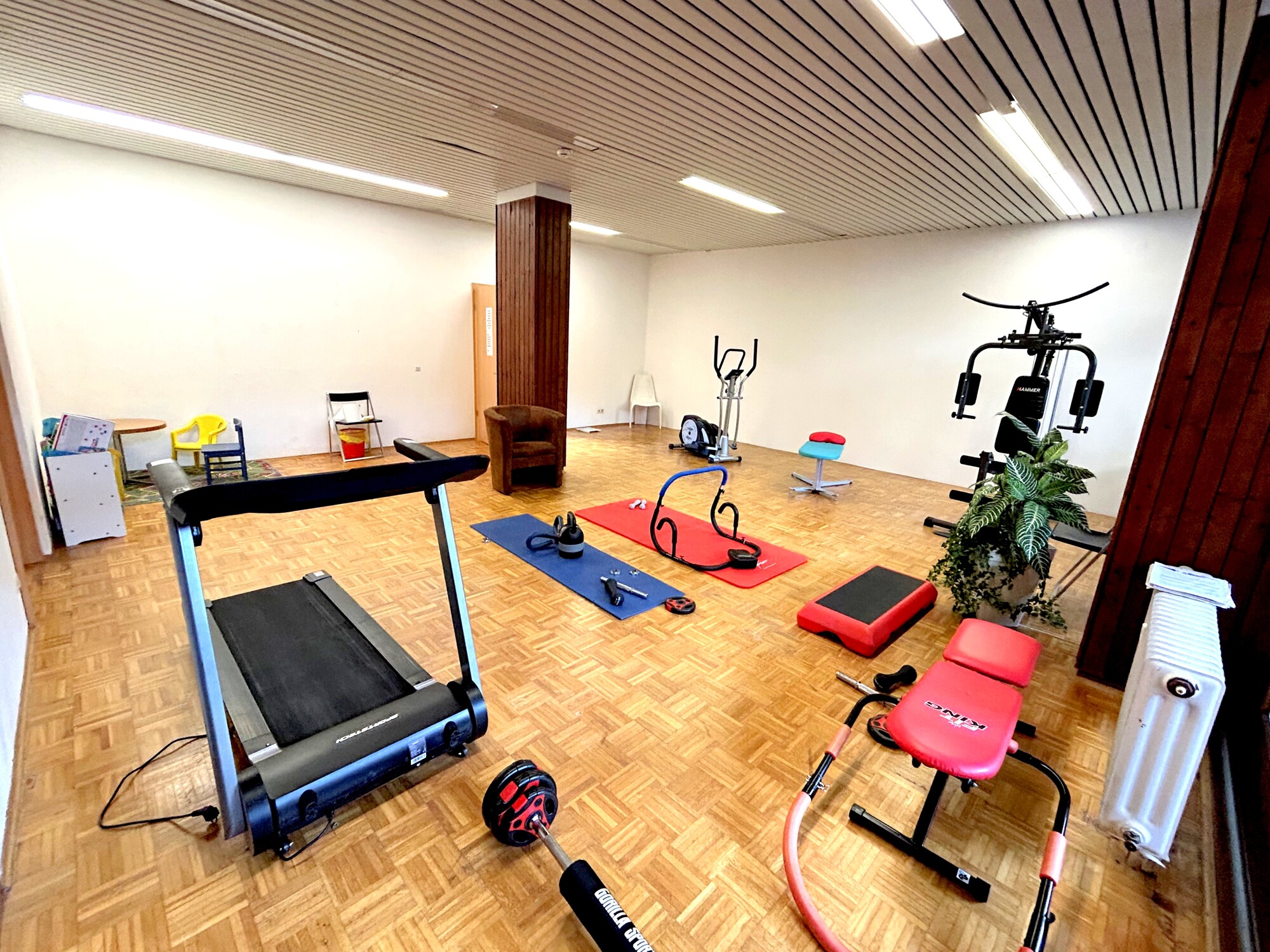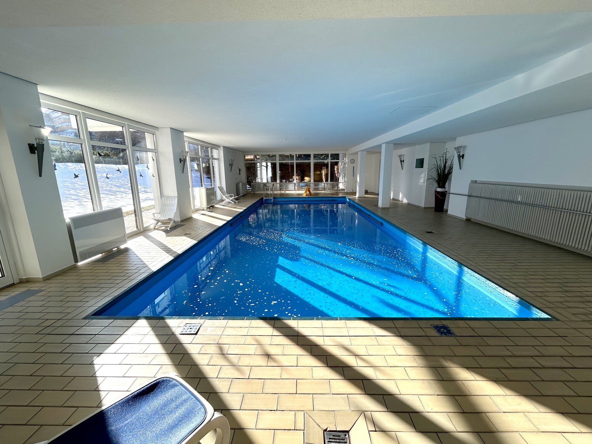 Ergänzend stehen im Gebäude Gemeinschaftsbereiche zur Verfügung, darunter ein Innenpool, eine Sauna sowie ein Fitnessraum. Das bietet kurze Wege für Sport und Entspannung, ohne den Alltag zusätzlich zu verplanen.