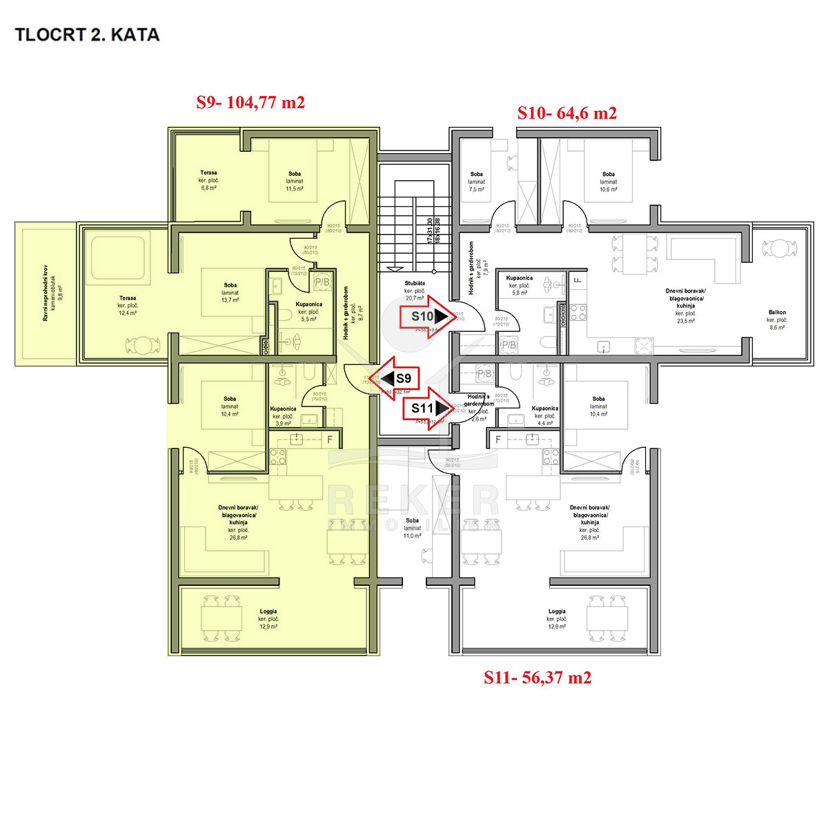 Die größte Wohnung im Gebäude bietet viel Raum und klare Struktur. Drei Schlafzimmer, zwei Badezimmer und mehrere Außenflächen unterstützen unterschiedliche Anforderungen im Alltag.