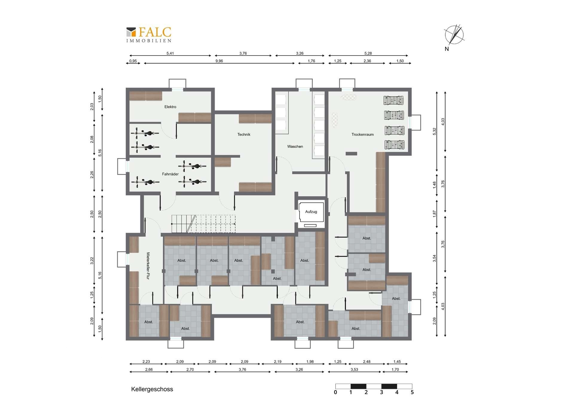 Das gesamte Gebäude ist vollunterkellert. Neben einem gemeinschaftlich nutzbaren Wasch- und Trockenraum ist jedem Mieter ein eigener, abschließbarer Kellerraum zugeordnet. Der barrierefreie Zugang zu allen Etagen ist durch einen modernen Aufzug gewährleistet. Im Außenbereich stehen direkt vor dem Haus sowie im Umfeld des gesamten Wohnkomplexes zahlreiche Pkw-Stellplätze zur Verfügung. Darüber hinaus besteht bei Interesse die Möglichkeit, sowohl Außenstellplätze als auch Tiefgaragenstellplätze käuflich zu erwerben.