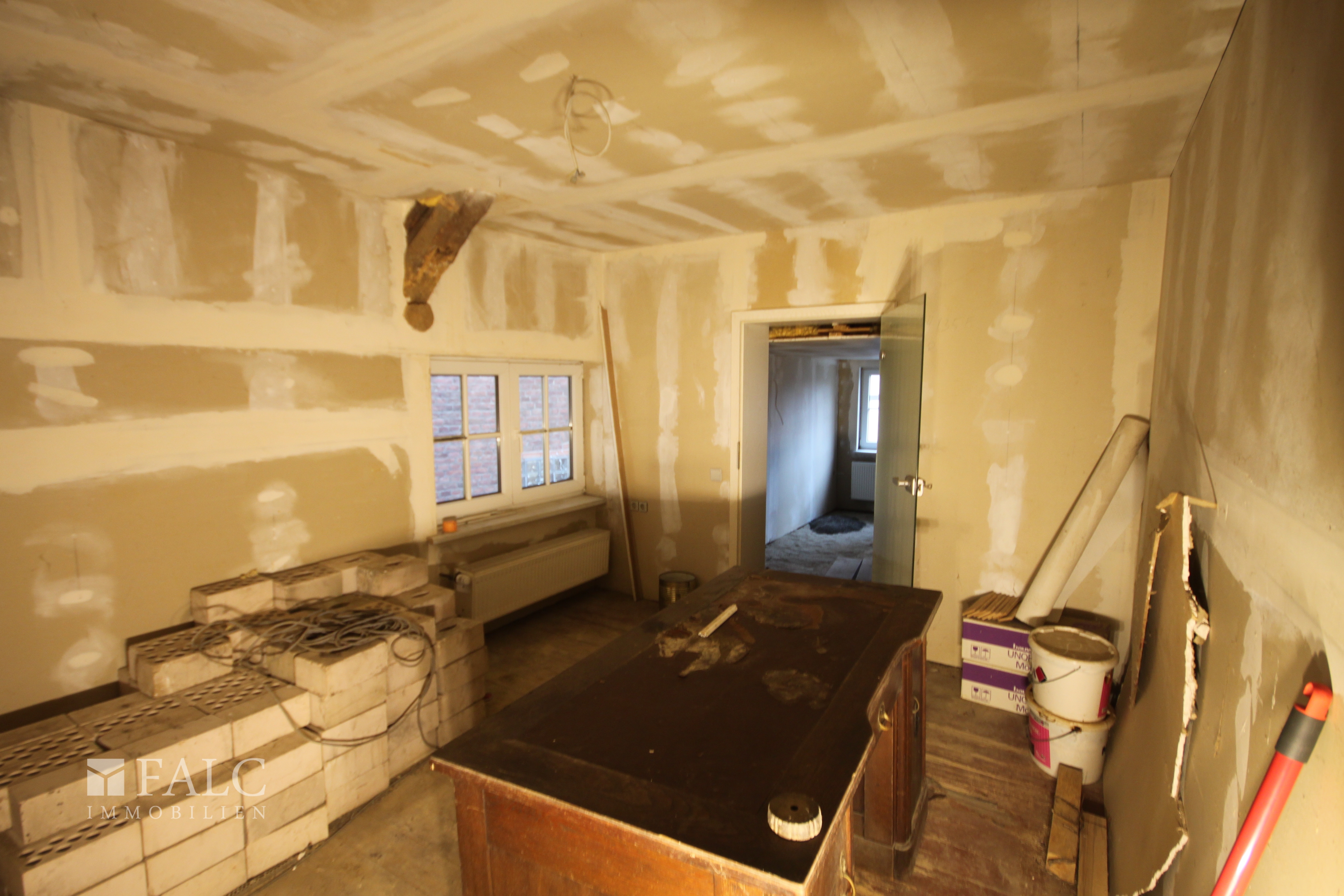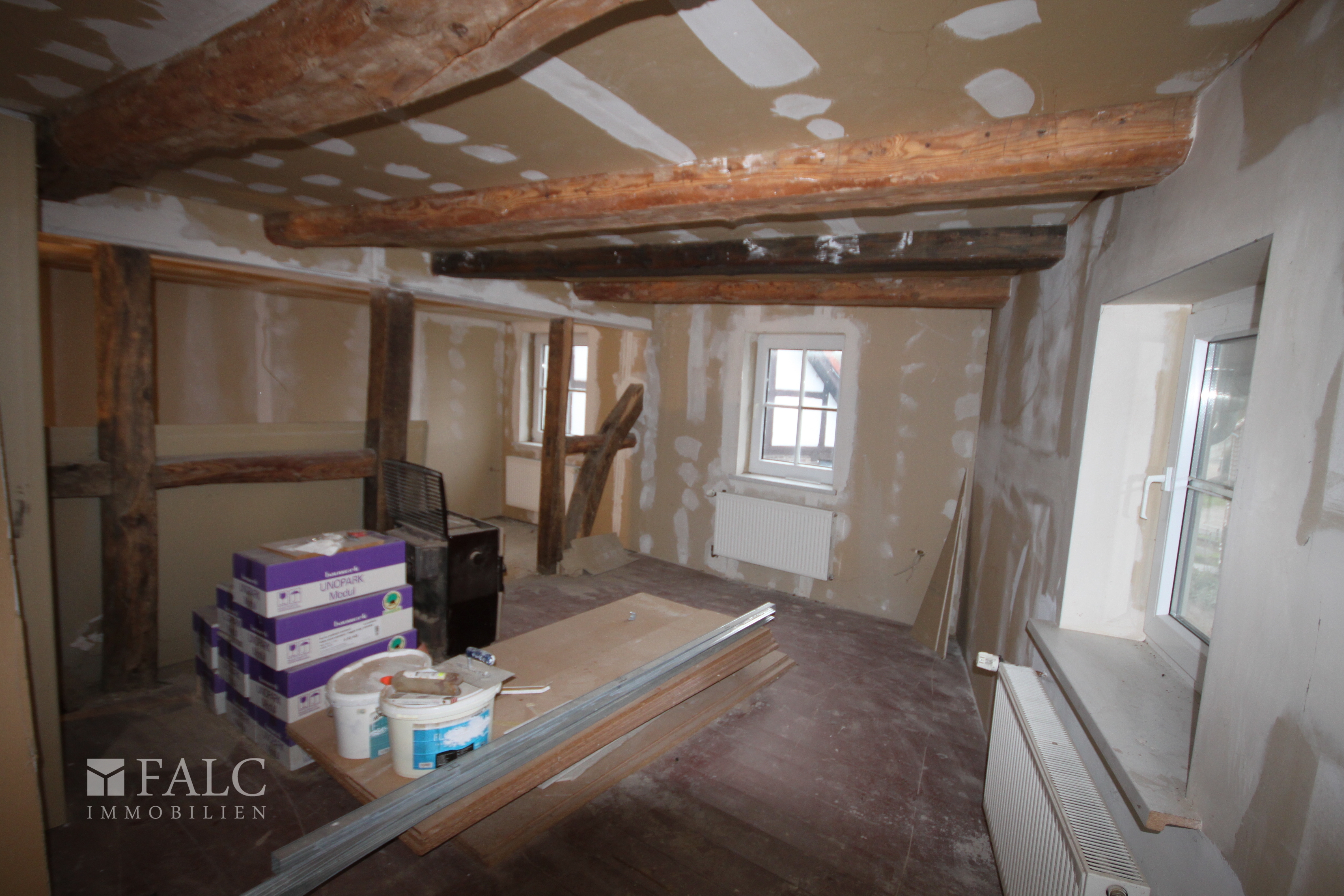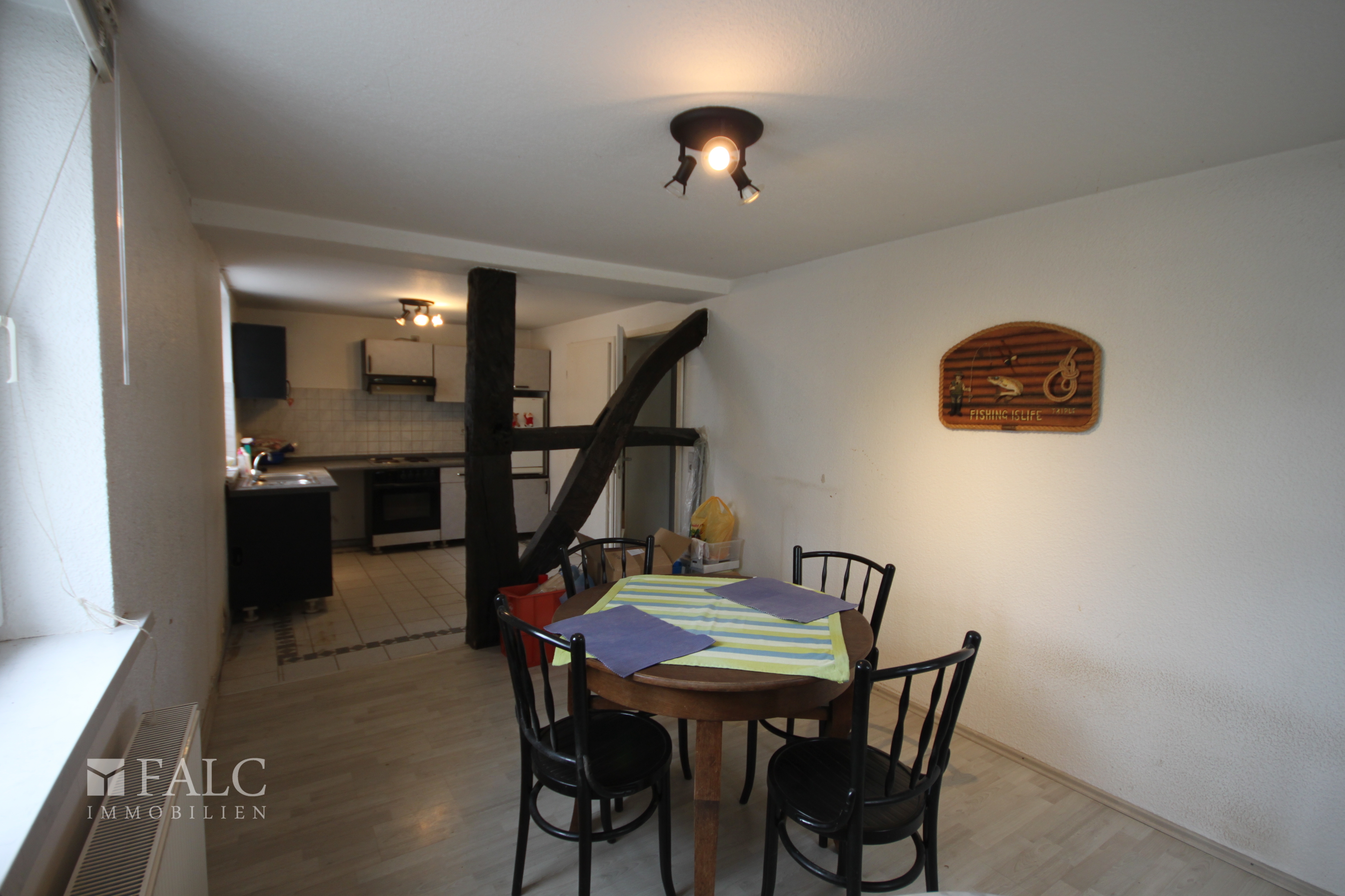 Dieses Fachwerkhaus bietet viel Platz für Familie und Arbeit unter einem Dach. Auf einem kompakten Grundstück finden Sie viel Wohnraum zum günstigen Preis. In der Küche ist genügend Platz für einen großen Esstisch, und im angrenzenden Hausarbeitsraum können auch Vorräte gelagert werden. Im großen Badezimmer, mit Dusche und Badewanne, hat man auch zu zweit noch Raum für sich. Im Obergeschoss befinden sich drei große Räume, die man nach den eigenen Wünschen gestalten kann. Durch den zweiten Eingang zur Straße wäre in zwei Zimmern des Erdgeschosses auch eine externe Büronutzung oder eine kleine Praxis möglich. Draußen sitzen und grillen - kein Problem! Der gepflasterte Außenbereich verfügt über einen Autostellplatz und die Möglichkeit einer gemütlichen Sitzecke mit Gartengrill. Mit der großen Arztpraxis gegenüber bietet sich auch eine Nutzung als Physiotherapiepraxis an. Im Kaufpreis enthalten ist der Endausbau des Obergeschosses, in dem noch Restarbeiten zu erledigen sind.
