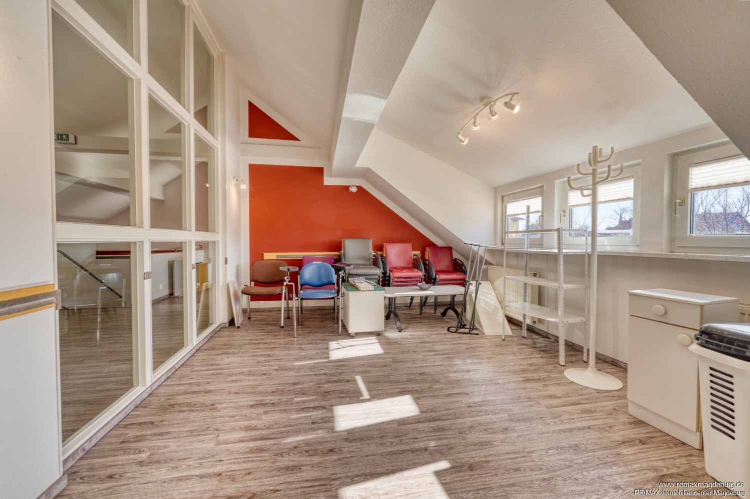 Diese außergewöhnliche Dachgeschossimmobilie bietet Ihnen eine seltene Gelegenheit, großzügigen Wohn- und Arbeitsraum ganz nach Ihren individuellen Vorstellungen zu gestalten. Auf ca. 185 m² Wohn- bzw. Nutzfläche eröffnet sich Ihnen ein vielseitig nutzbares Objekt, das sowohl für stilvolles Wohnen als auch für eine gewerbliche Nutzung – beispielsweise als Praxis oder Büro – bestens geeignet ist.