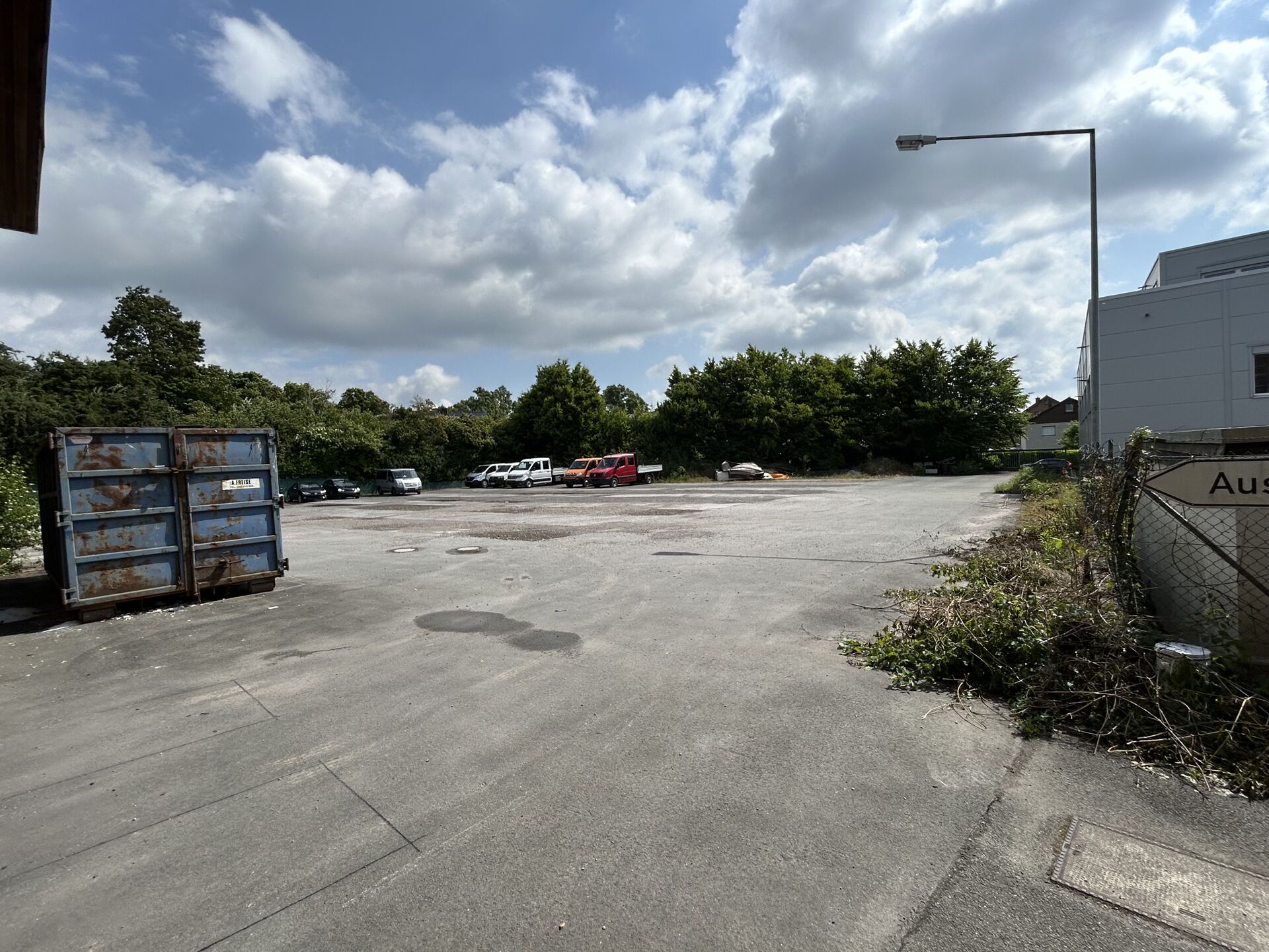Suchen Sie eine moderne Halle mit Büroräumen nach Bedarf auf einem Grundstück mit großer Freifläche und 2 Zufahrten? Die hier zum Vermietung stehende ca. 2.800m²-Warmhalle besteht aus einer Hallenfläche von ca. 2.546 m² und ca. 334 m² Büro-/Sozial-/Technikräumen und weiteren darüber befindlichen Lagerflächen. Außen gibt es eine Freifläche von > 2.600 m² zur zweiten (östlichen) Grundstückszufahrt. Nördlich der Warmhalle befindet sich ein offener, überdachter Bereich von ca. 190 m² Fläche. Aufgrund der Zuwegung von 2 Straßen aus ist eine praktische Hallenumfahrt gegeben.