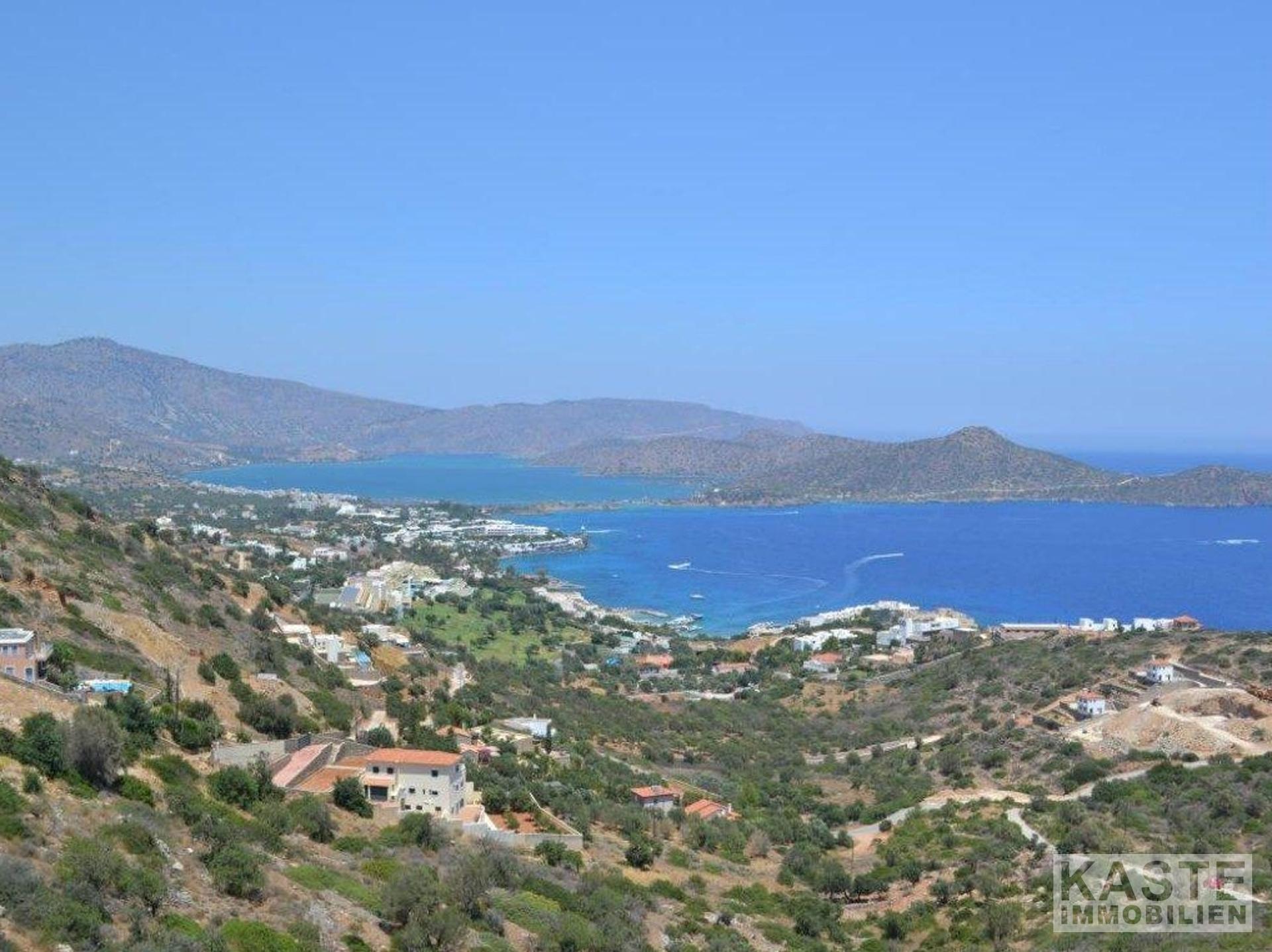 Von seiner erhöhten Position aus genießt das Grundstück einen fantastischen Blick auf das Meer, die Luxusresorts von Elounda und die Bergkette von Sitia.