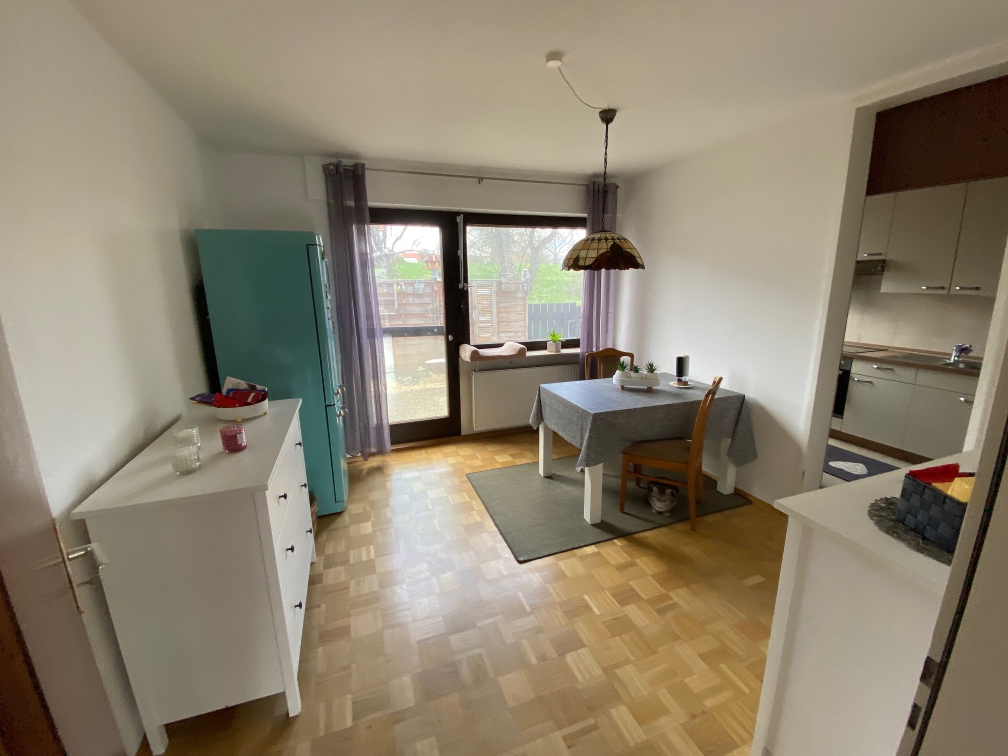 Erdgeschoss (EG): •ca. 123 m² Wfl. Wohnfläche nach DIN •4,5 Zimmer, davon 2-3 Schlafräume •Wohnzimmer mit Zugang zum Balkon •Schlafzimmer, 2 Kinderzimmer •Küche mit Elektrogeräten, Essbereich •Badezimmer mit Tageslicht, Badewanne, Dusche, •WC separat •Abstellraum •Böden Parkett, Laminat, Fliesen im Bad/WC und Küche