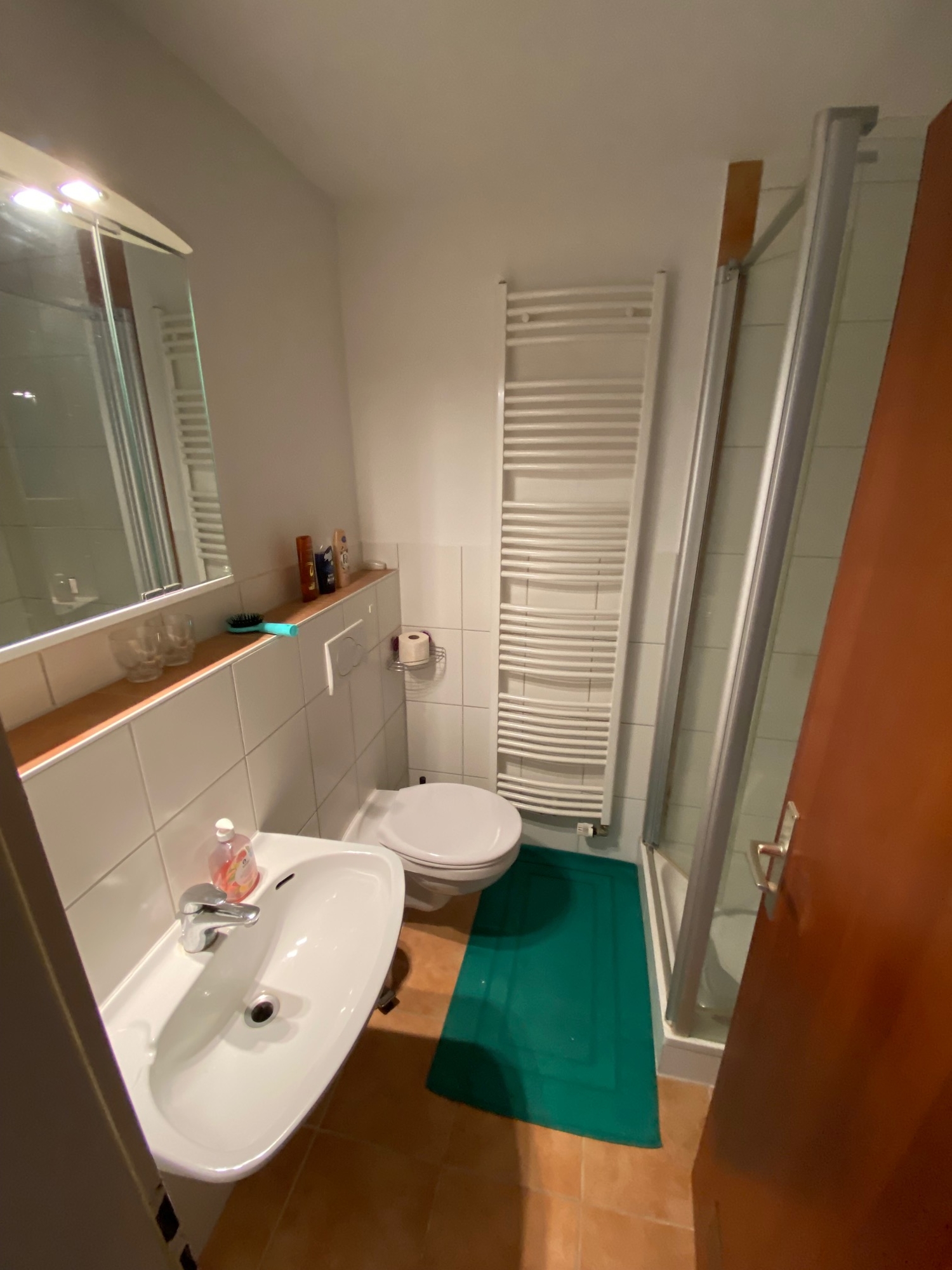 Gartengeschoss: Einliegerwohnung •ca. 60 m² Wfl. Wohnfläche nach DIN •2 Zimmer •Wohn-Esszimmer •Schlafzimmer •Küche •Badezimmer mit Waschbecken, Dusche, WC •Handtuchheizkörper im Bad •Böden Teppich, Fliesen im Bad •Wände und Decken Tapete •Terrasse
