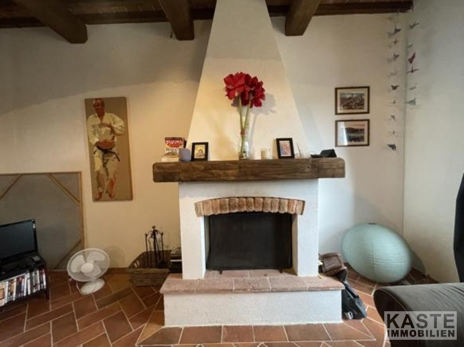 Hübsches Landhaus nur 5 km vom Zentrum von Montecatini Terme entfernt, Haupthaus von ca. 200 qm, aufgeteilt in 2 Einheiten, aber intern verbunden, umgeben von 5 Hektar Land mit Oliven und Kastanien. Villa 1 ist eine in sich geschlossene Villa für 2 Personen. Eine Wendeltreppe führt vom unteren Wohnzimmer hinauf zum Hauptschlafzimmer mit eigenem Bad/Duschraum. Im Erdgeschoss befindet sich eine moderne, voll ausgestattete Küche mit Elektroofen, Gasherd, Kühlschrank, Gefrierschrank und Geschirrspüler. Es gibt einen offenen Kamin, Terrakottaböden und sichtbare Balken. Villa 2 hat 3 Doppelschlafzimmer, 1 Zweibettzimmer, eine voll ausgestattete moderne Küche/Esszimmer und 2 Bäder. An die Küche grenzt ein Wohnzimmer mit Fenstertüren zum Innenhof. Dieses kann in ein Schlafzimmer mit Doppelbett umgewandelt werden, da sich das große Sofa in ein Kingsize-Bett verwandeln lässt. Das Duschbad/WC geht von diesem Wohnzimmer ab und gegenüber dem Duschbad befindet sich der Heizungsraum. Das Haus verfügt über eine Zentralheizung und eine Klimaanlage in den Schlafzimmern im Obergeschoss.
