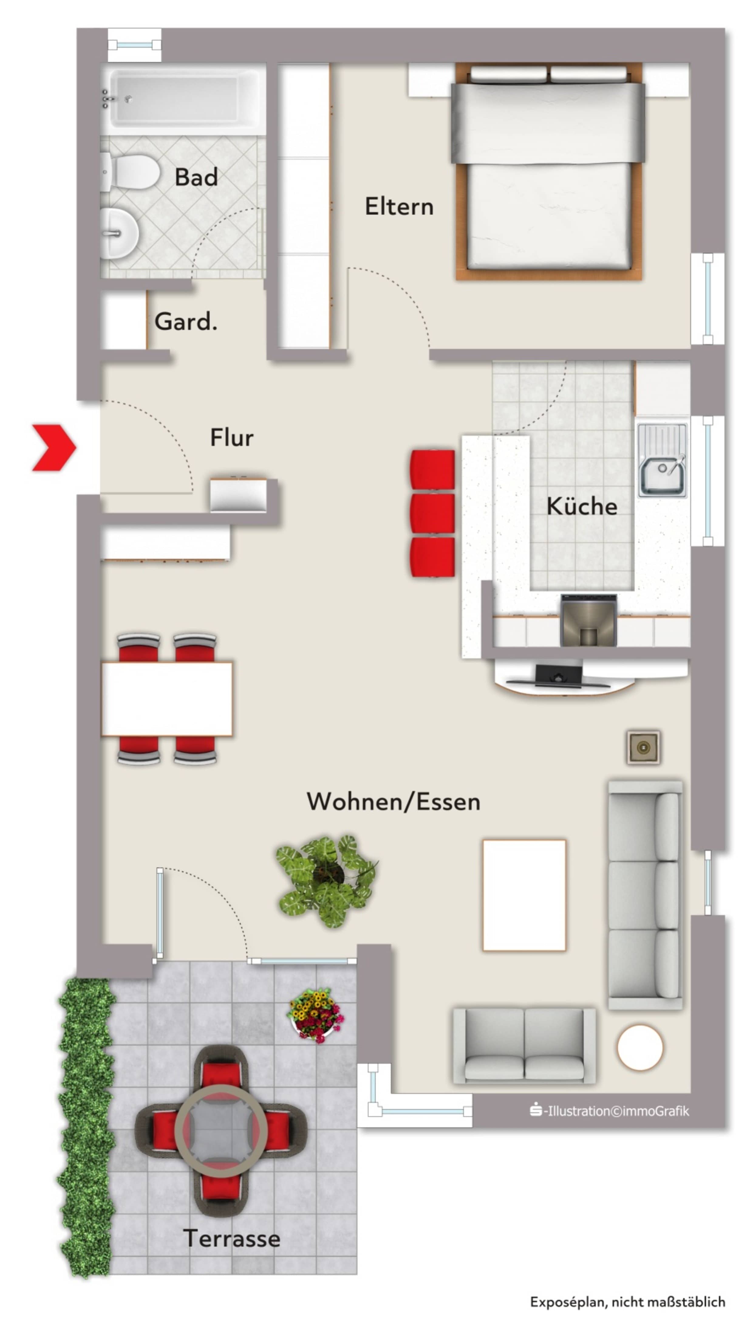 Die Wohnung eignet sich perfekt für eine Einzelperson, die die Vorzüge einer Erdgeschosswohnung mit Gartenanteil zu schätzen wissen. Auch Kapitalanleger finden hier eine attraktive Investitionsmöglichkeit.