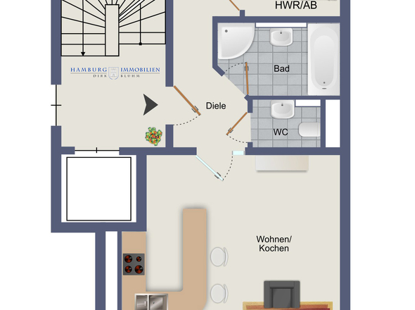 Käuferprovision - Der Käufer ist verpflichtet, eine Courtage in Höhe von 3,57 % inkl. gesetzlicher MwSt. des Kaufpreises an die Firma HAMBURG IMMOBILIEN Dirk Bluhm zu zahlen. Die Courtage ist verdient und fällig bei notariellem Kaufvertragsabschluss. Mit dem Verkäufer besteht ein Maklervertrag zur Zahlung der Courtage in gleicher Höhe.