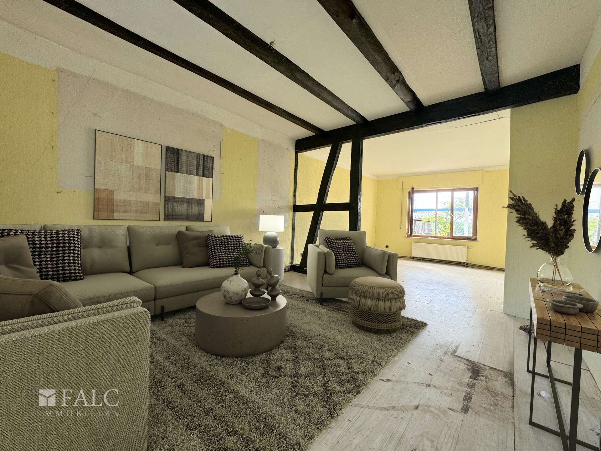 Das Fachwerkhaus stammt aus dem Baujahr 1920. In den 70er Jahren wurden dann An- und Umbauten an diesem durchgeführt. Nach diesen beträgt die Wohnfläche 104 m² und verteilt sich auf 4 Zimmer.
