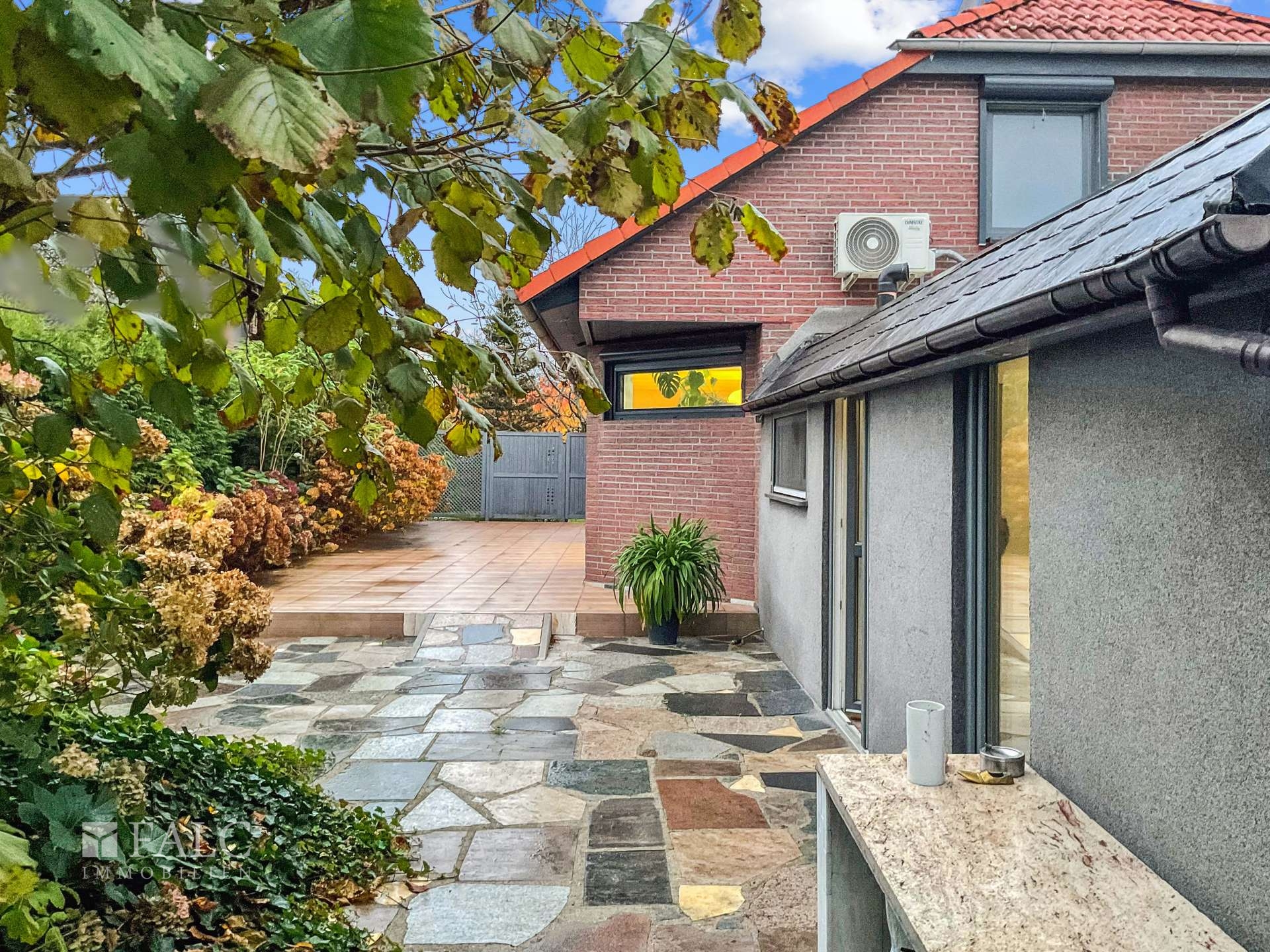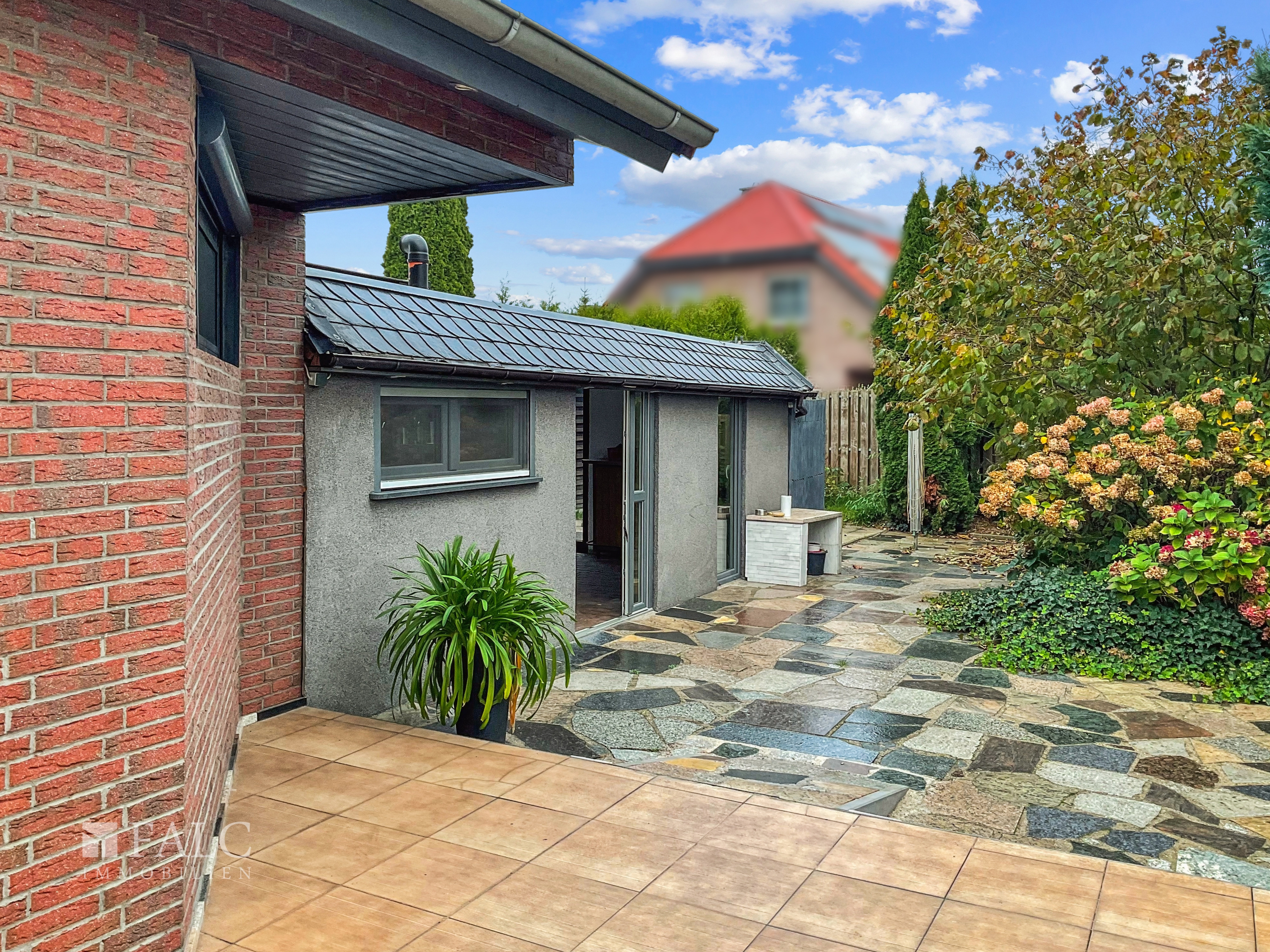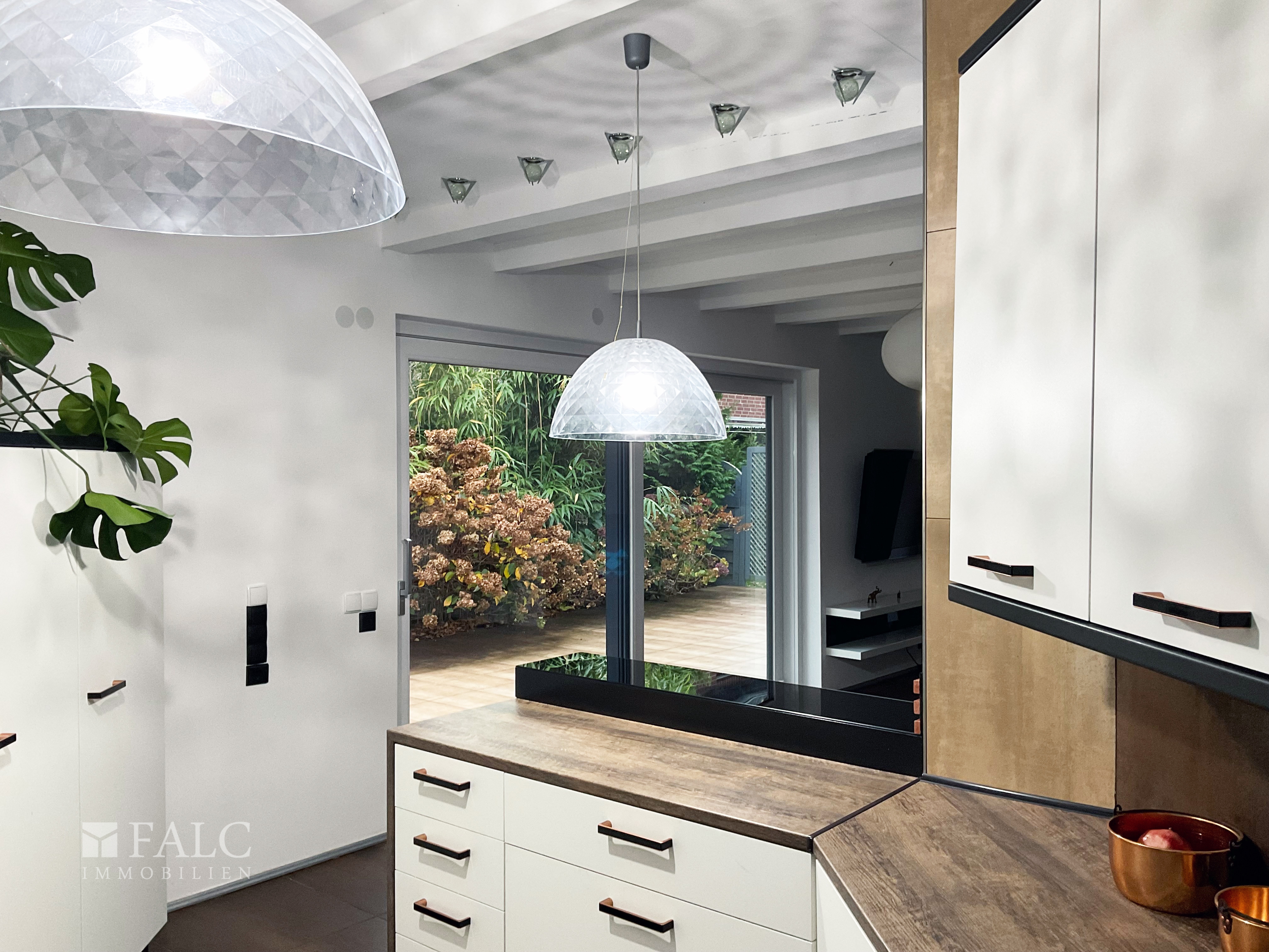 Das zweite absolute Highlight dieser Immobilie ist der lichtdurchflutete Hausanbau im Erdgeschoss, der die Vorbereitungsküche beherbergt und das kreative Potential erweckt. So bietet dieser Bereich ausreichend Gestaltungsspielraum und Platz für eine Nutzung als Wintergarten, welcher einen herrlichen Blick in den liebevoll angelegten Garten bietet oder für einen weiteren Ausbau als eine Einliegerwohnung, die zusätzlich als Wohnraum für Familienmitglieder genutzt werden kann.