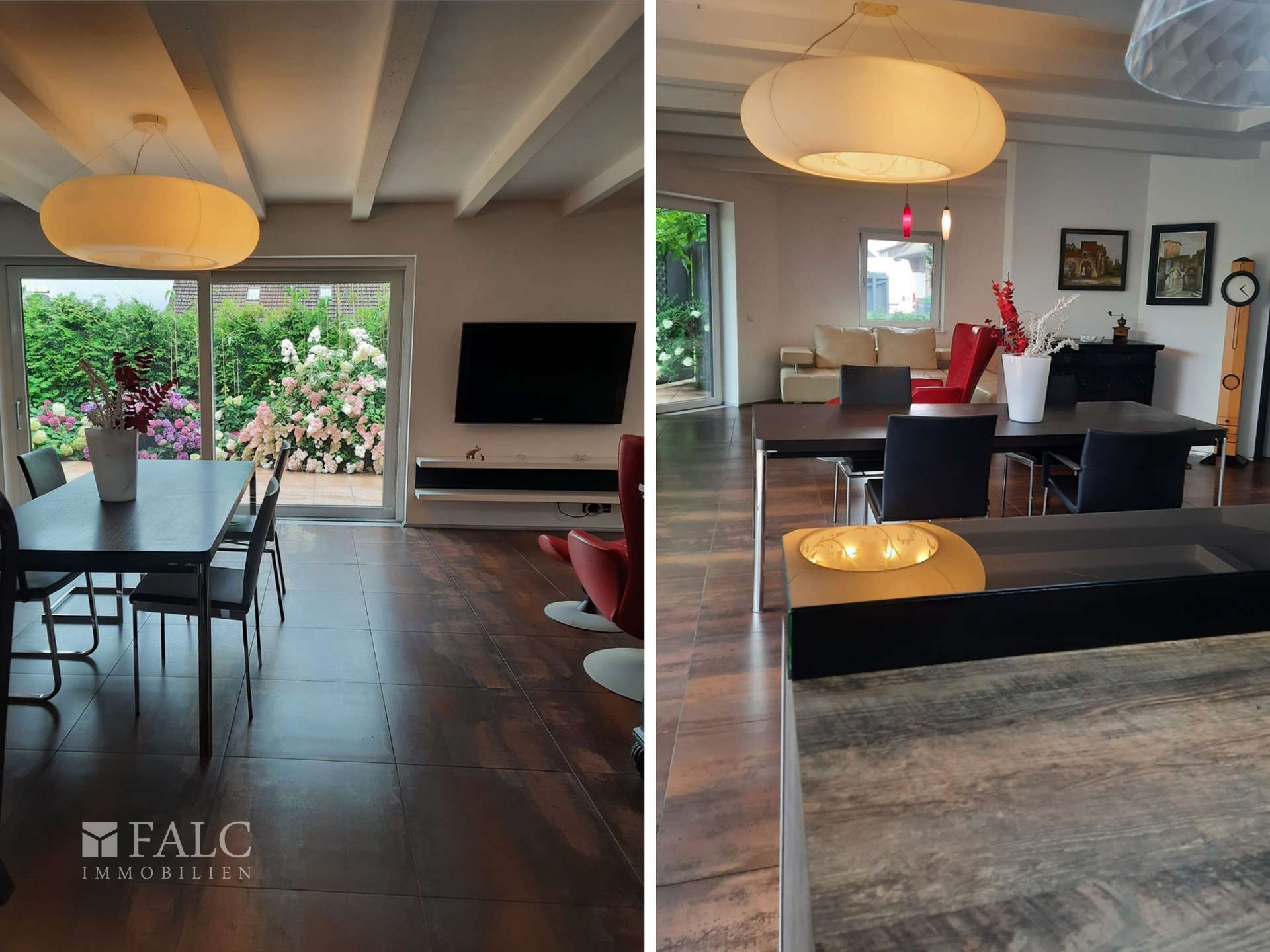 Die Innenausstattung des Hauses ist gehoben und überzeugt durch hochwertige Materialien sowie eine geschmackvolle Gestaltung. Der Boden ist mit Fliesen und Laminat ausgelegt, welcher eine moderne Atmosphäre ausstrahlt. Die bodentiefen Fenster im Erdgeschoss lassen viel Licht rein und ermöglichen einen barrierearmen Zugang zum Haus von jeder Seite.