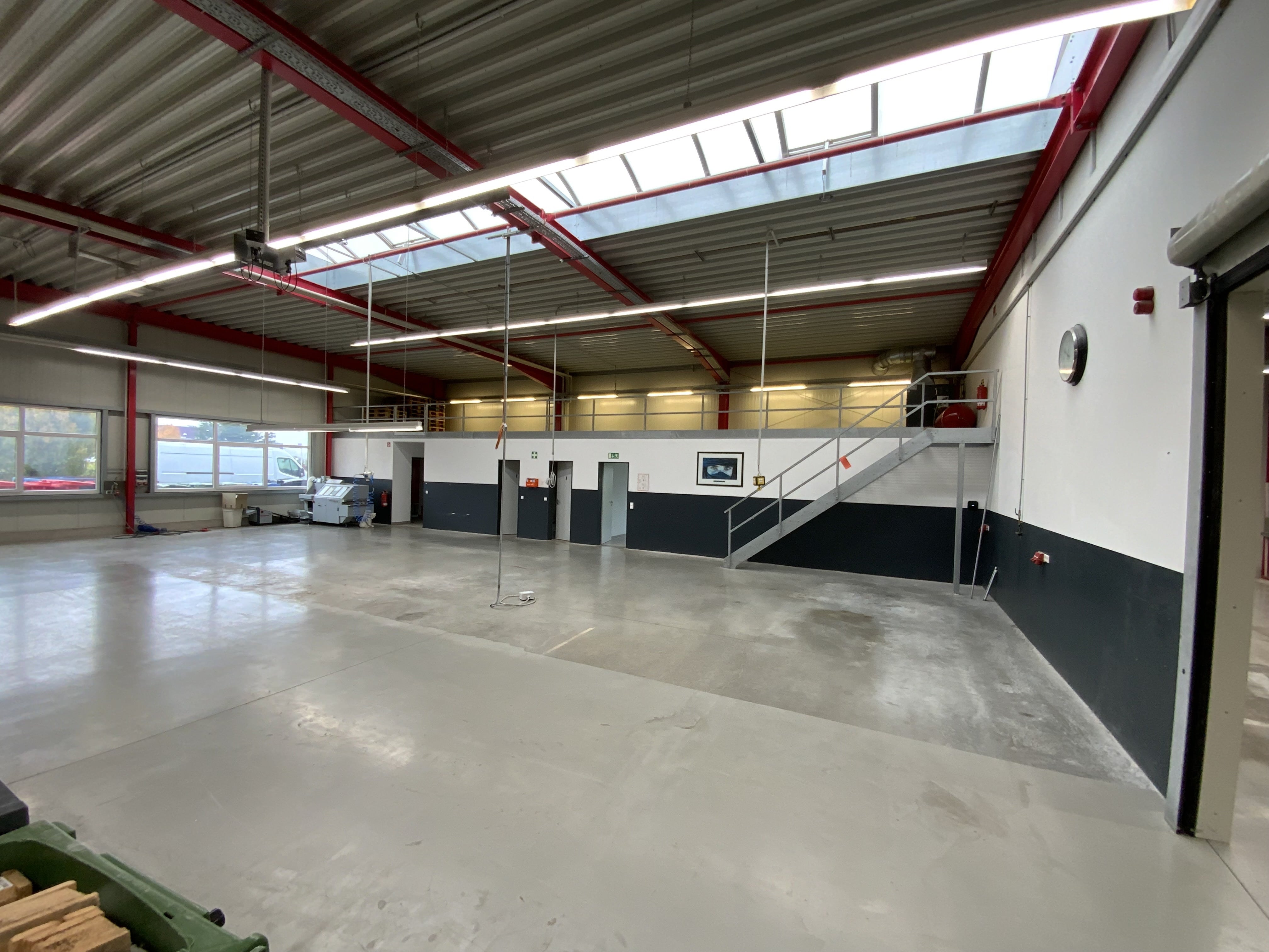 Dieses super gepflegte und noch junge Gewerbeobjekt sucht nach neuem Unternehmer! Ausgestattet mit einem repräsentativen Eingangsbereich, hellen, modernen Büros, einer Teeküche und hochwertigen Sanitäranlagen im Verwaltungsbereich sowie zwei, miteinander verbundenen Hallen inkl. Sozialräumen und Hochlagerflächen, können Sie hier mit Ihrem Gewerbe ohne großen Aufwand schnell produktiv werden. Zwei große Rolltore gewehrleisten einen reibungslosen Produktionsfluss. Ein eigener Transformator sorgt für die nötige Spannung und auch für ausreichend Stellfläche auf dem Betriebshof ist gesorgt. Sie wollen noch wachsen? Kein Problem, Erweiterungsmöglichkeiten sind bereits vorhanden.