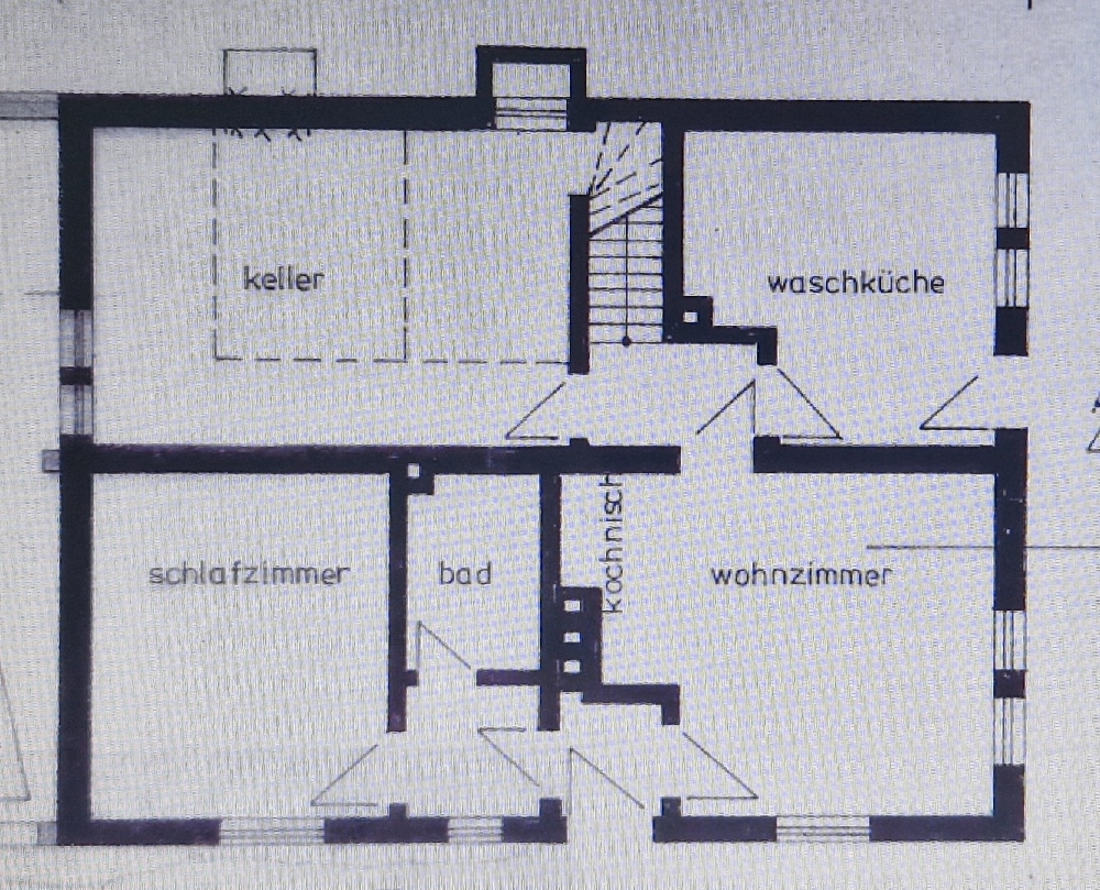 Die Wohnung im Erdgeschoss mit einer Wohnfläche von 46m² teilt sich wie folgt auf: Ein Schlafraum, Flur, Wohnküche, Bad mit Wanne, WC, Kellerraum.