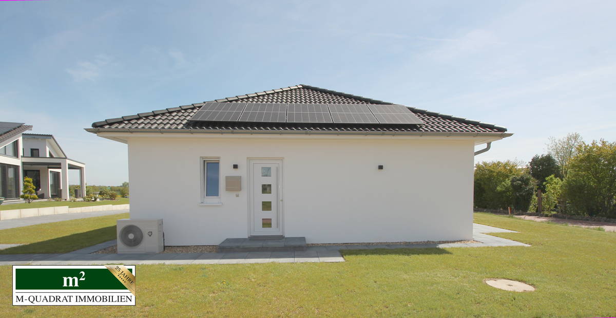 Auf einem großzügigen Eigentumsgrundstück von rd. 600 m² erwartet Sie eine Wohnfläche von ca. 96 m², die sich auf eine Ebene erstreckt. Zusätzlich können Sie auf Wunsch weitere 600 m² Grundstück erwerben. Mit insgesamt drei Zimmern, darunter als Herzstück ein großzügiger Wohn-Küchenbereich mit vielen bodentiefen Fensterelementen und ein Terrassenzugang, zwei Schlafzimmer und ein vollausgestattetes modernes Vollbad mit Dusche & Badewanne, eignet sich dieses Domizil perfekt für Paare oder den Single mit modernen Wohnansprüchen. Die hochwertige Einbauküche mit Elektromarkengeräten von Siemens lädt zum Kochen und Verweilen ein, während die gut erreichbare Terrasse und der weitläufige Garten für erholsame Stunden im Freien sorgen. Ihr implementierter Mähroboter ist bereits für Sie aktiv.