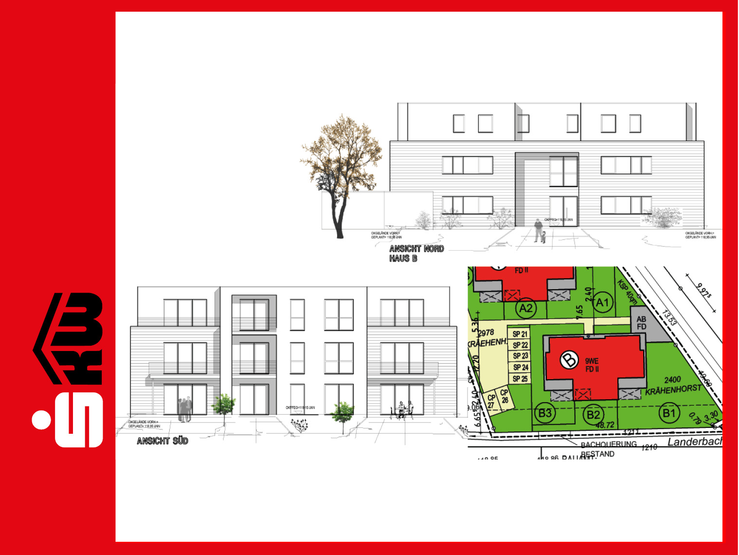 Neubau 9-Familienhaus in Schloß Holte ca. 2.749 m² anteiliges Kaufgrundstück 2-3 Zimmerwohnungen mit Wohnflächen zwischen ca. 57 m² und ca. 81 m² ca. 613 m² Gesamtwohnfläche Abstellraum in den Wohnungen KfW40-Energieeffzienzstandard, Erdwärmepumpe, PV-Anlage, angenehme Fußbodenheizung bequemer Aufzug inkl. Stellplätze Vollkeller