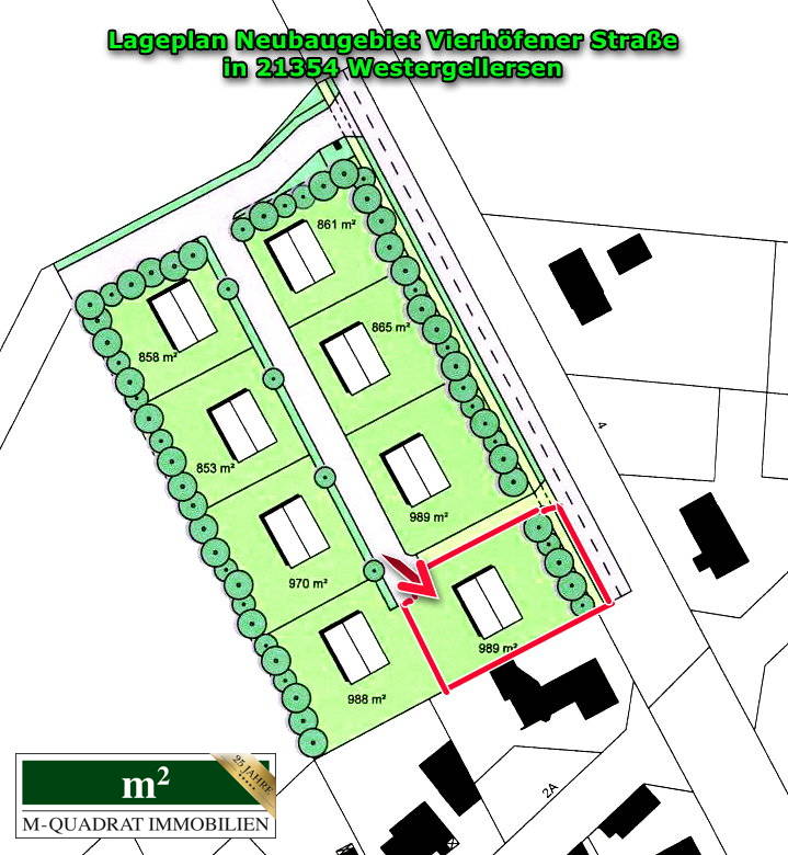 PROVISIONSFREIER ERWERB FÜR KÄUFER Zum Verkauf steht ein attraktives Premium-Wohnbaugrundstück in der idyllischen Gemeinde Westergellersen in einem Neubaugebiet mit nur acht Bauplätzen, von denen bereits sechs Immobilien nahezu fertig gestellt sind. Das großzügig bemessene Grundstück erstreckt sich über eine Fläche von ca. 989 m² und bietet damit ideale Voraussetzungen für die Realisierung Ihres individuellen Wohntraums. Eingebettet in eine ruhige und naturnahe Umgebung mit nahe gelegenem Wald, zeichnet sich die Lage durch eine hervorragende Lebensqualität aus. Die Grundstücksfläche bietet ausreichend Platz für ein Einfamilienhaus mit Garten oder sogar ein großzügiges Doppelhaus, um Ihren Lebens(t)raum nach Ihren Wünschen zu gestalten. Die GRZ liegt bei großzügigen 0,25 und ermöglicht Ihnen eine Wohnfläche von rein rechnerisch ca. 225 m². Die Verfügbarkeit dieses einzigartigen Baugrundstücks ist ab dem 01.09.2025 garantiert.