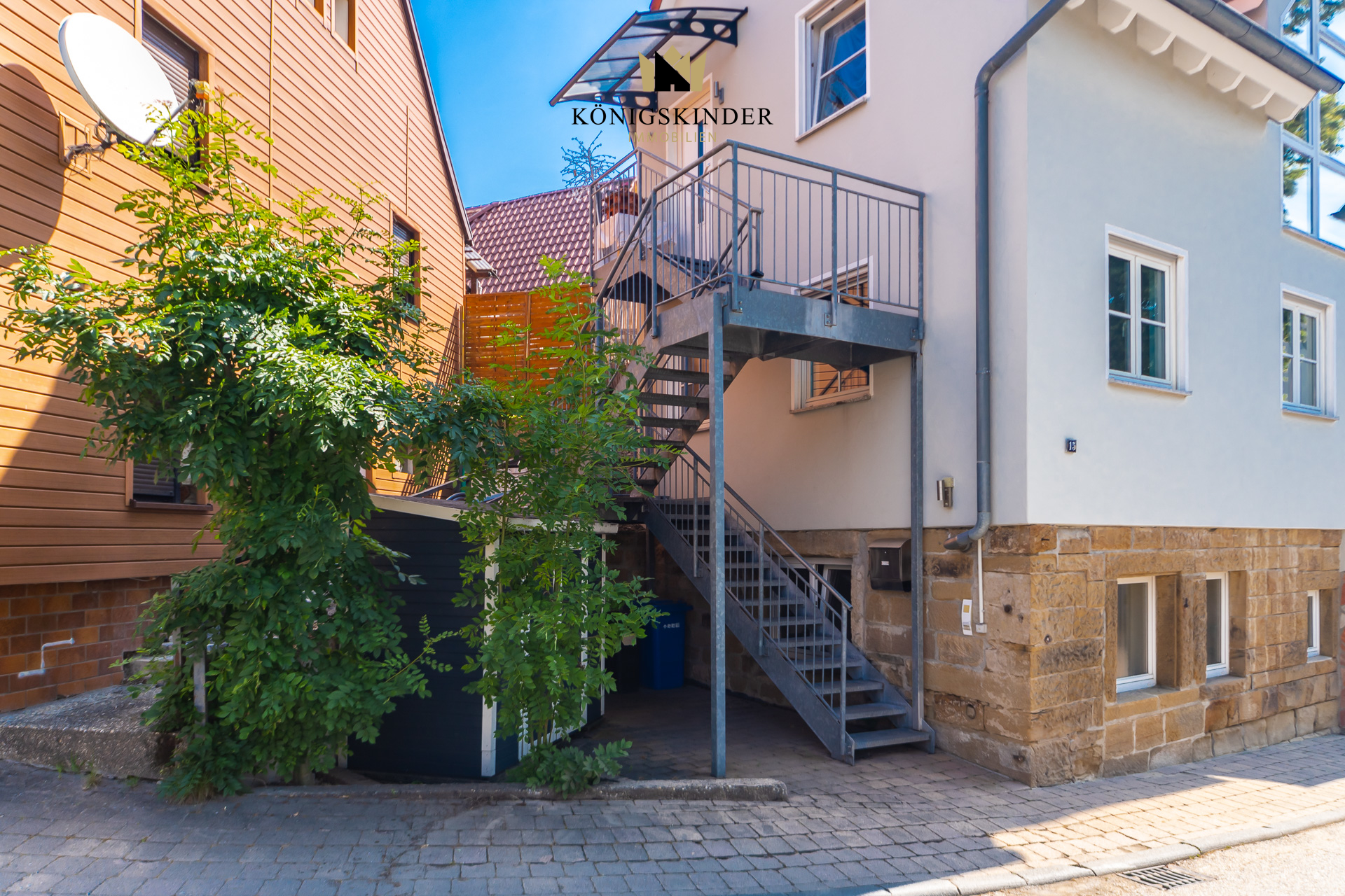 Eigener Zugang über Außentreppe: Die Wohnung ist über einen separaten Eingang von außen erreichbar – das sorgt für zusätzliche Privatsphäre und macht die Nutzung besonders flexibel.