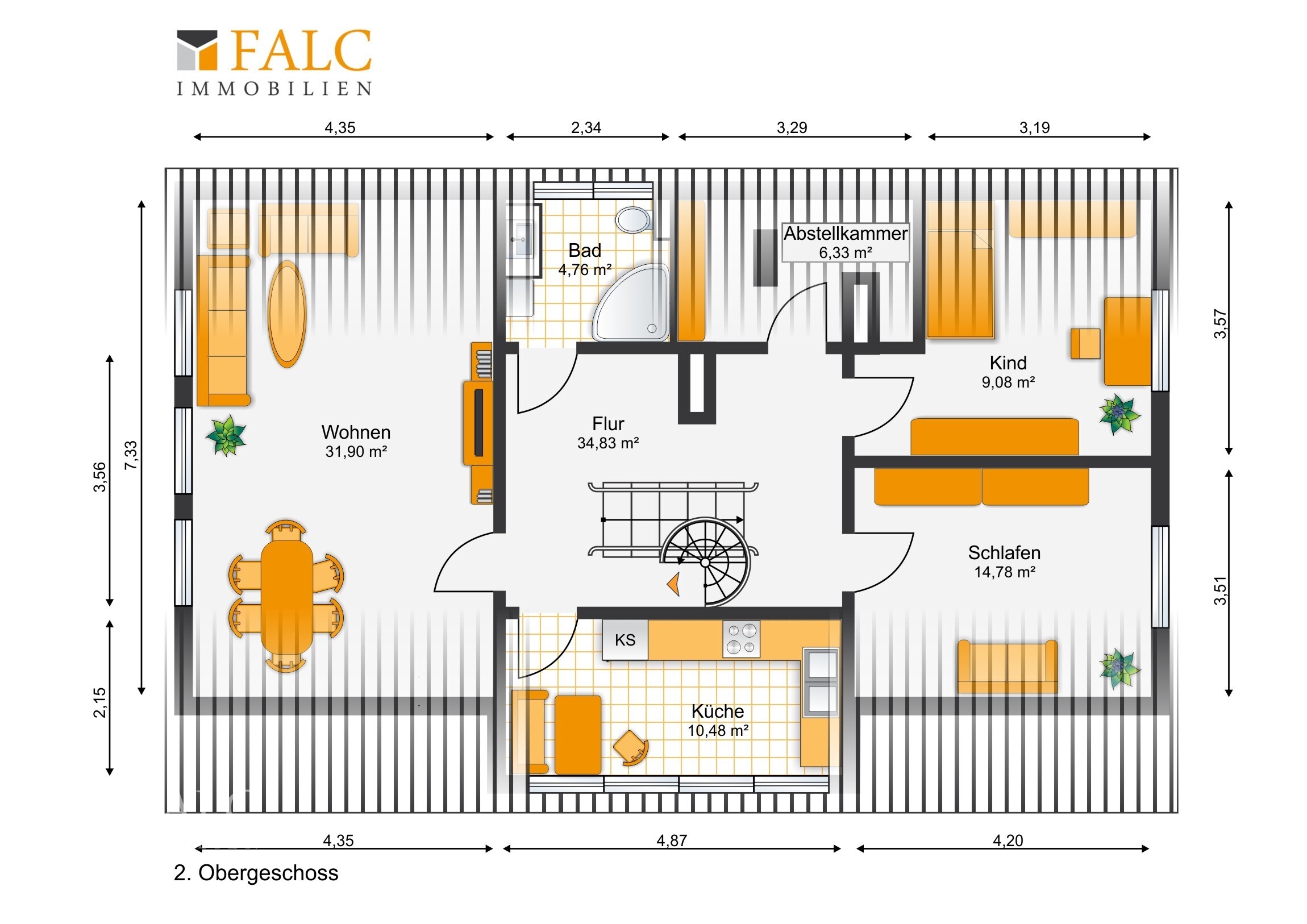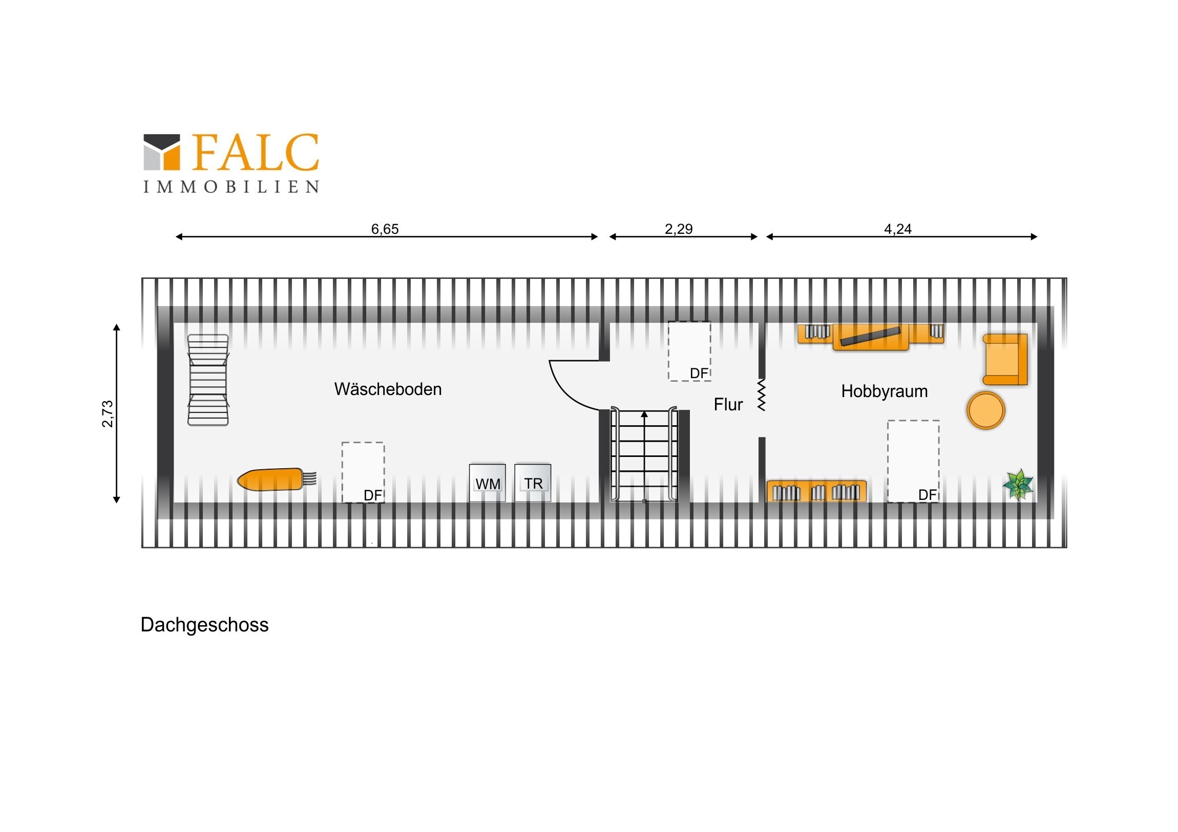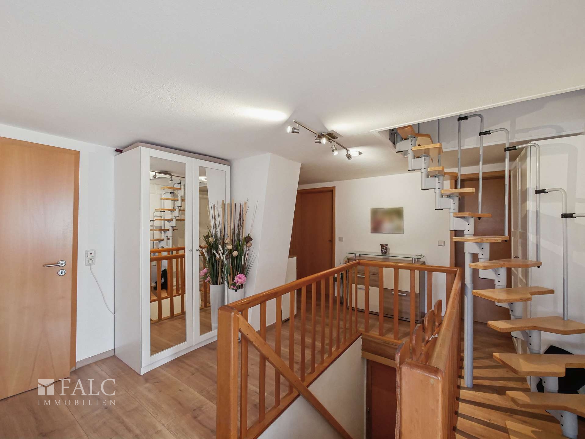 Über die Wendeltreppe, die nicht nur platzsparend, sondern auch jederzeit veränderbar ist, geht es nach oben in das Dachgeschoss. Dort finden wir auf der linken Seite einen Raum, der als Wäschezimmer genutzt werden kann – dem gegenüber finden Sie einen Hobbyraum. Ob als gemütlichen Rückzugsort oder als Fitnessraum - lassen Sie Ihren Ideen freien Lauf! Zusätzlich zur Wohnfläche.