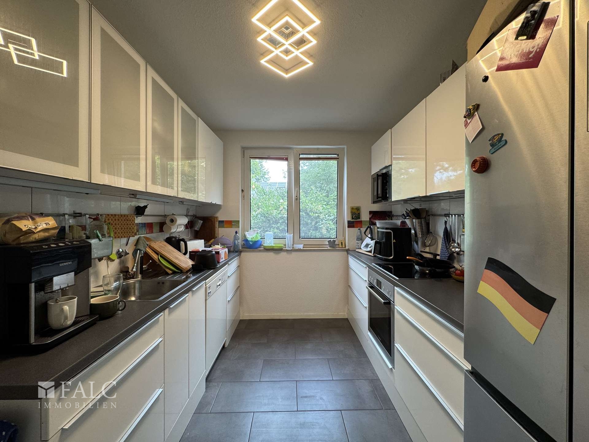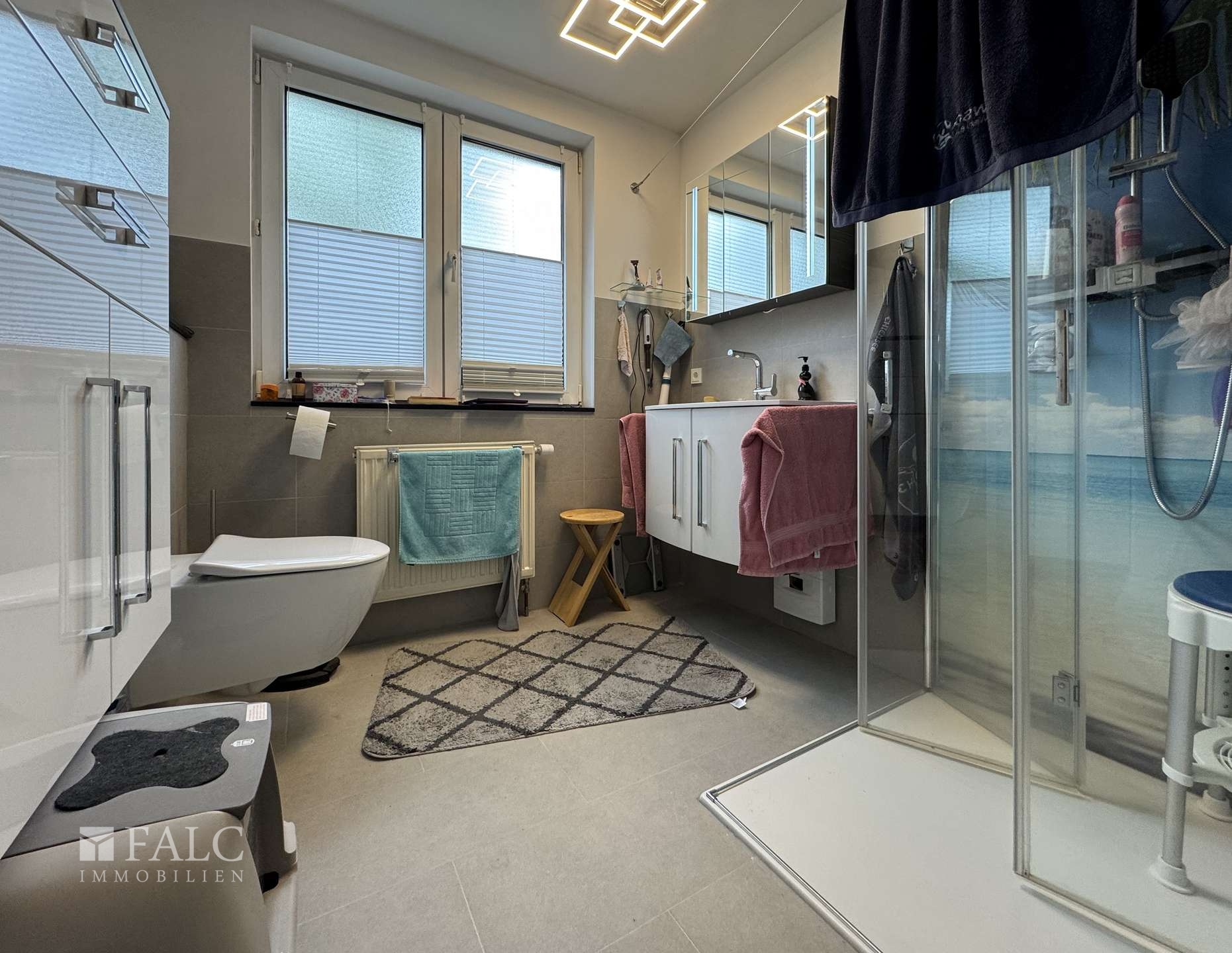 Die separate Küche bietet ausreichend Platz für Hobbyköche – hier lassen sich Lieblingsgerichte mit Leichtigkeit zaubern. Das frisch sanierte Badezimmer überzeugt mit einer modernen, bodengleichen Dusche, stilvollen Armaturen und eleganten Fliesen.