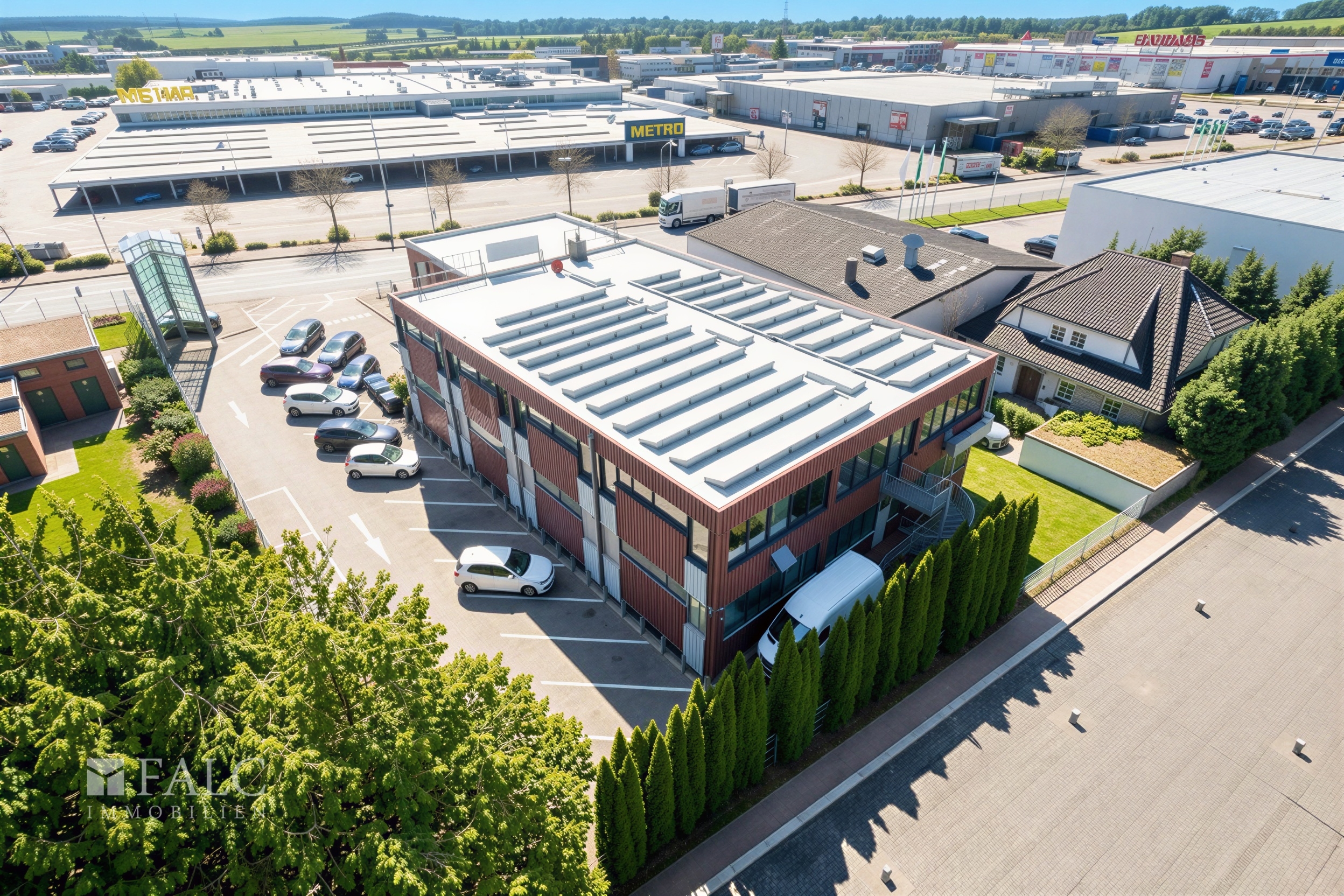 Ein weiterer starker Frequenzbringer liegt direkt gegenüber: der Großhandel Metro. Die unmittelbare Nachbarschaft sorgt für zusätzliche Sichtbarkeit und ein lebendiges Umfeld mit regelmäßigem Kundenaufkommen.