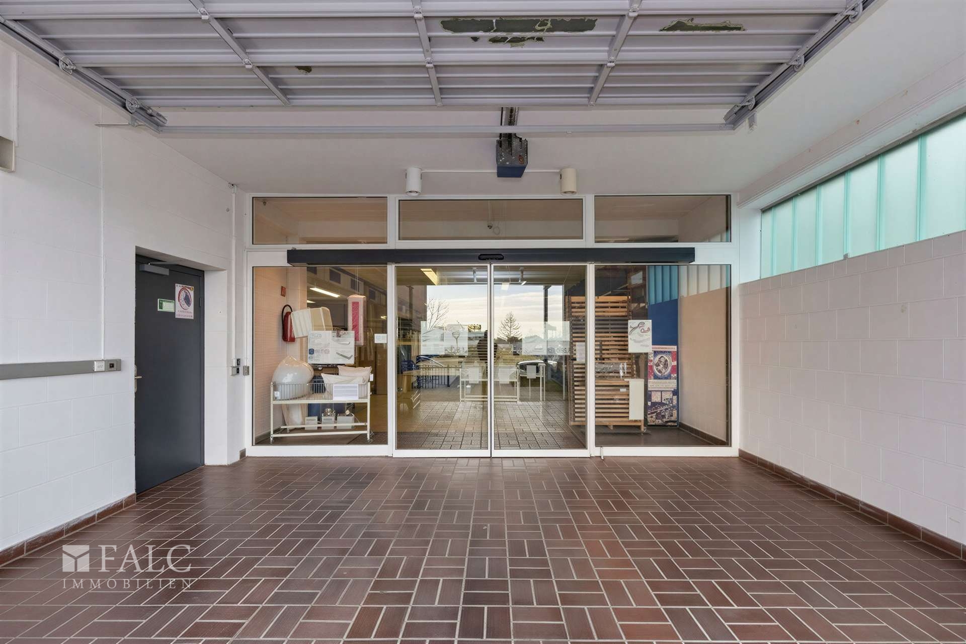 Der Haupt- und Kundeneingang zur Einheit erfolgt komfortabel über eine elektrische Schiebetür, die einen barrierearmen Eintritt für Kunden ermöglicht. Ergänzt wird die Hauptfläche durch ein separates Büro, einen Pausenraum für Mitarbeitende sowie getrennte Damen- und Herren-WCs. Zusätzlich finden Sie jede Menge Stauraum auf der rückwärtigen Seite der Verkaufsfläche.