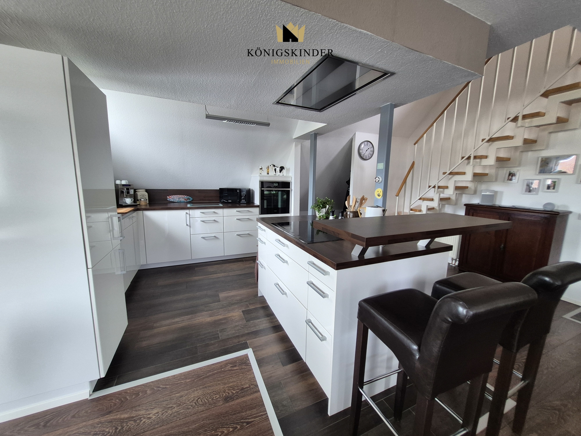 Die offene Einbauküche lädt zum Kochen und Verweilen ein und ist ein zentraler Treffpunkt für Familie und Freunde. Genießen Sie gemütliche Abende am Kamin, der eine angenehme Wärme und besondere Atmosphäre in Ihr neues Heim bringt.