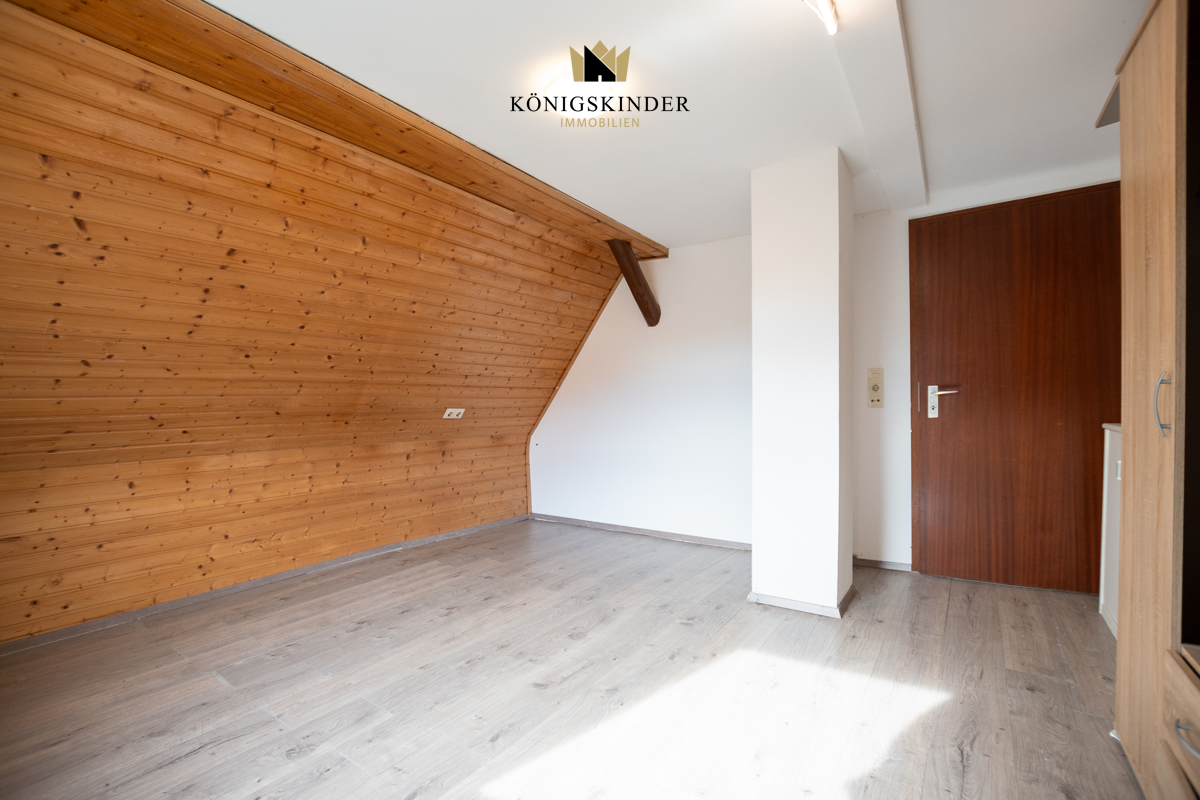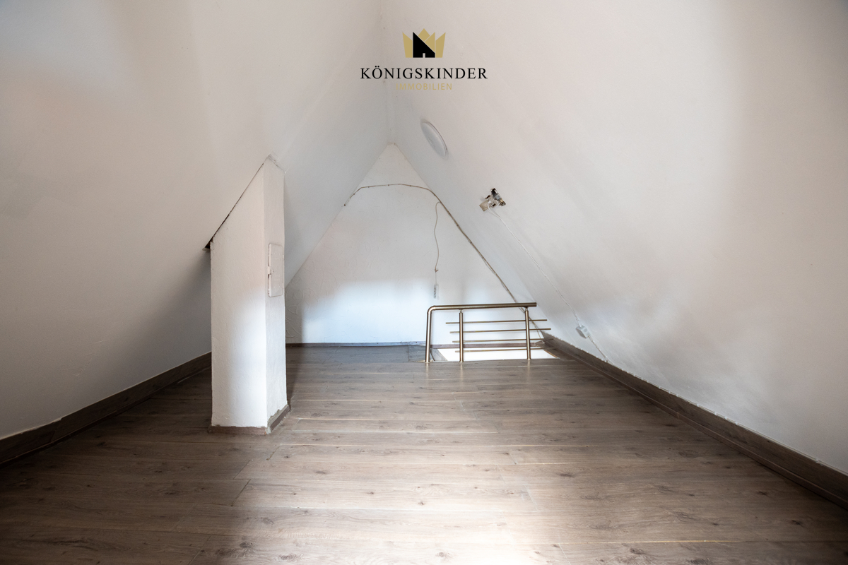 Der ca. 110 m² große, größtenteils modernisierte Wohnbereich befindet sich im Obergeschoss des Gebäudes und besteht aus einem Treppenhaus, einem Tageslichtbad, einer geräumigen Wohnküche, einem Wohnzimmer, zwei Schlafzimmern und einem Raum im Dachgeschoss.