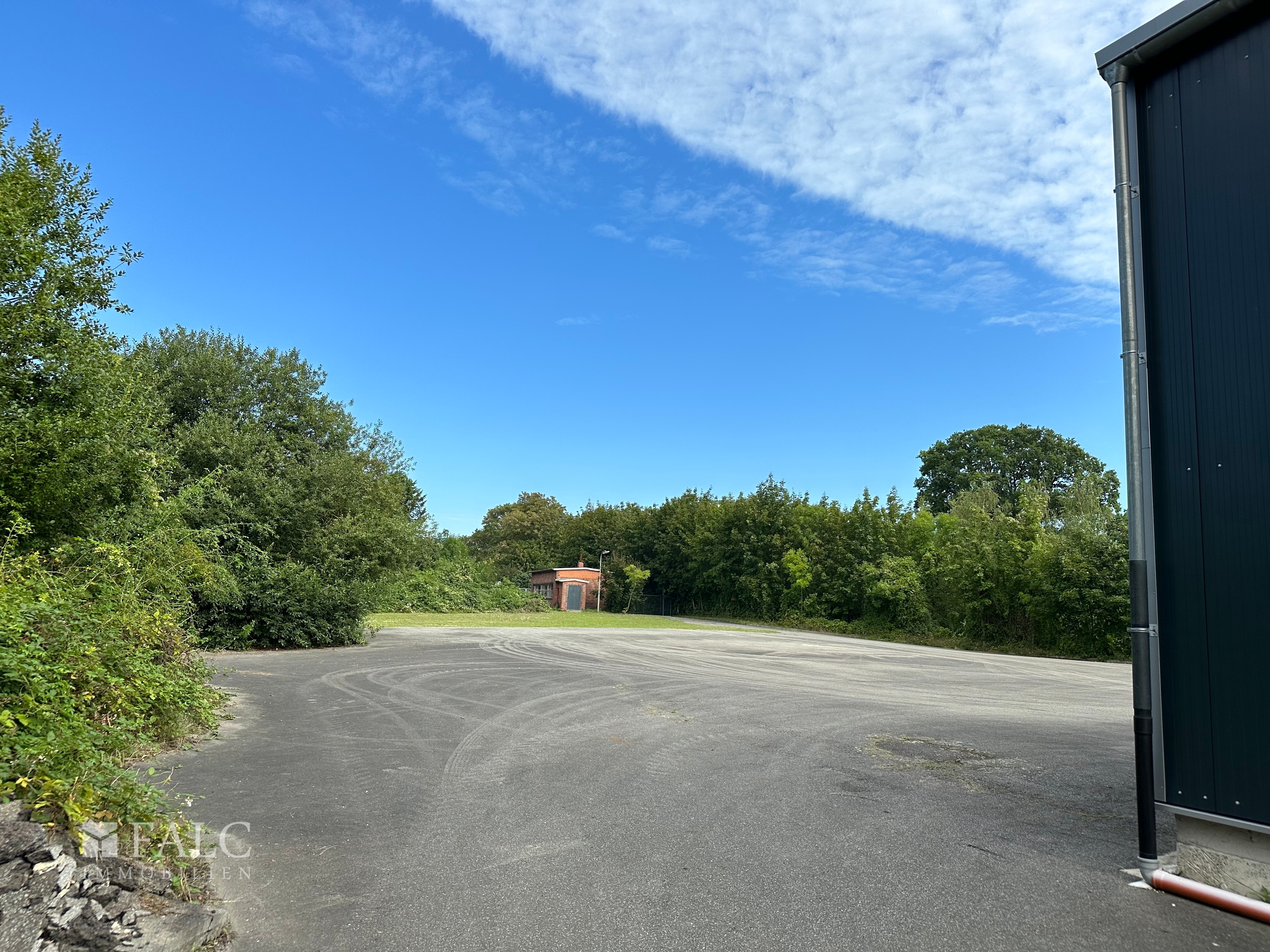 Die Außenbereiche auf einer Fläche von ca. 6.000 m² bieten ausreichend Platz für Logistik und Parkmöglichkeiten. Optional besteht die Möglichkeit weitere angrenzende 8.000 m² Grundstücksfläche auf Anfrage zu erwerben.