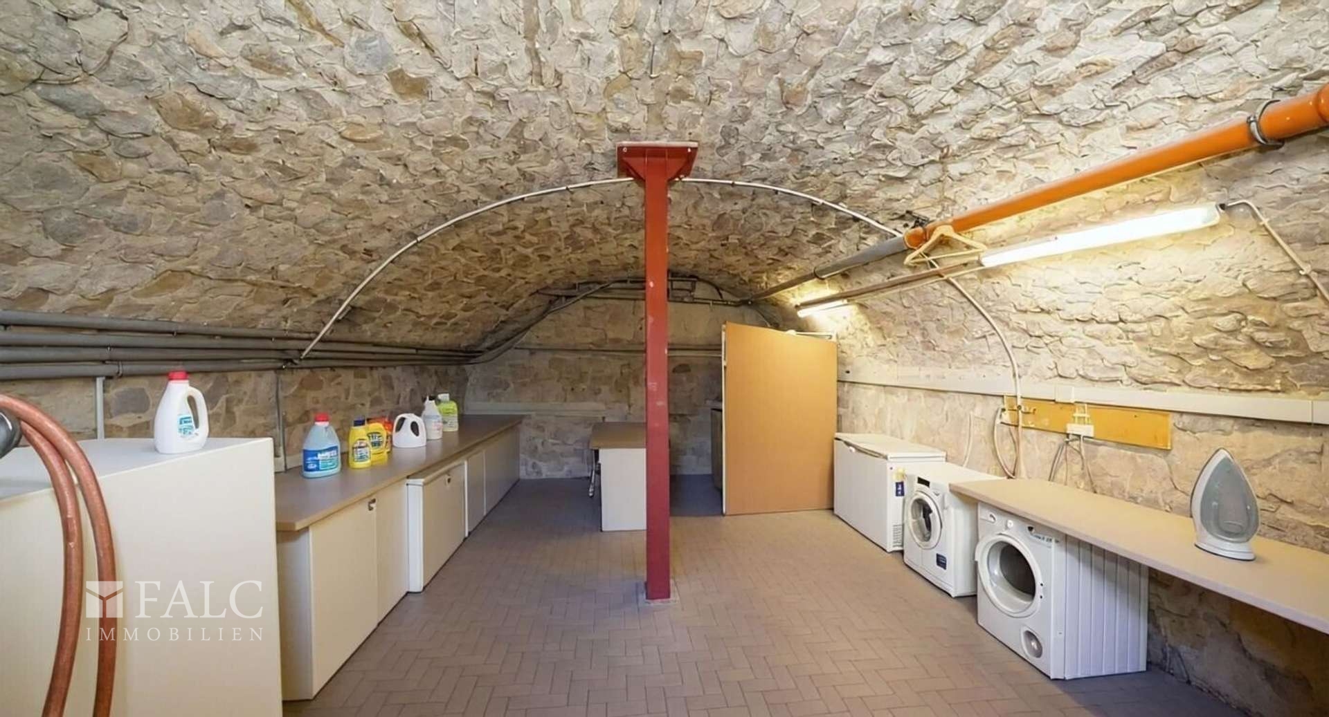 Im historischen Gewölbekeller, von Außen begehbar, herrscht das ganze Jahr über eine gleichmäßige Temperatur – ideal für Vorräte, Wein oder selten genutzte Dinge wie Winterreifen oder Campingausrüstung. Die Wasseranschlüsse ermöglichen Ihnen eine Waschküche, auch ein Hunde-Spa nach einem Spaziergang ist denkbar und praktisch.