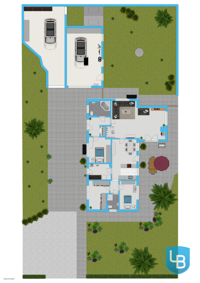 Die Immobilie überzeugt schon beim Ankommen mit einem liebevoll gestalteten Vorgarten und einer großzügigen Auffahrt, die Platz für mindestens drei PKW bietet. Ein großer Carport sowie eine Garage am Ende des Grundstücks sorgen für zusätzlichen Komfort. Von der Garage aus gelangen Sie direkt in den eingezäunten Gartenbereich mit gemütlicher Feuerstelle – perfekt für entspannte Abende im Freien.