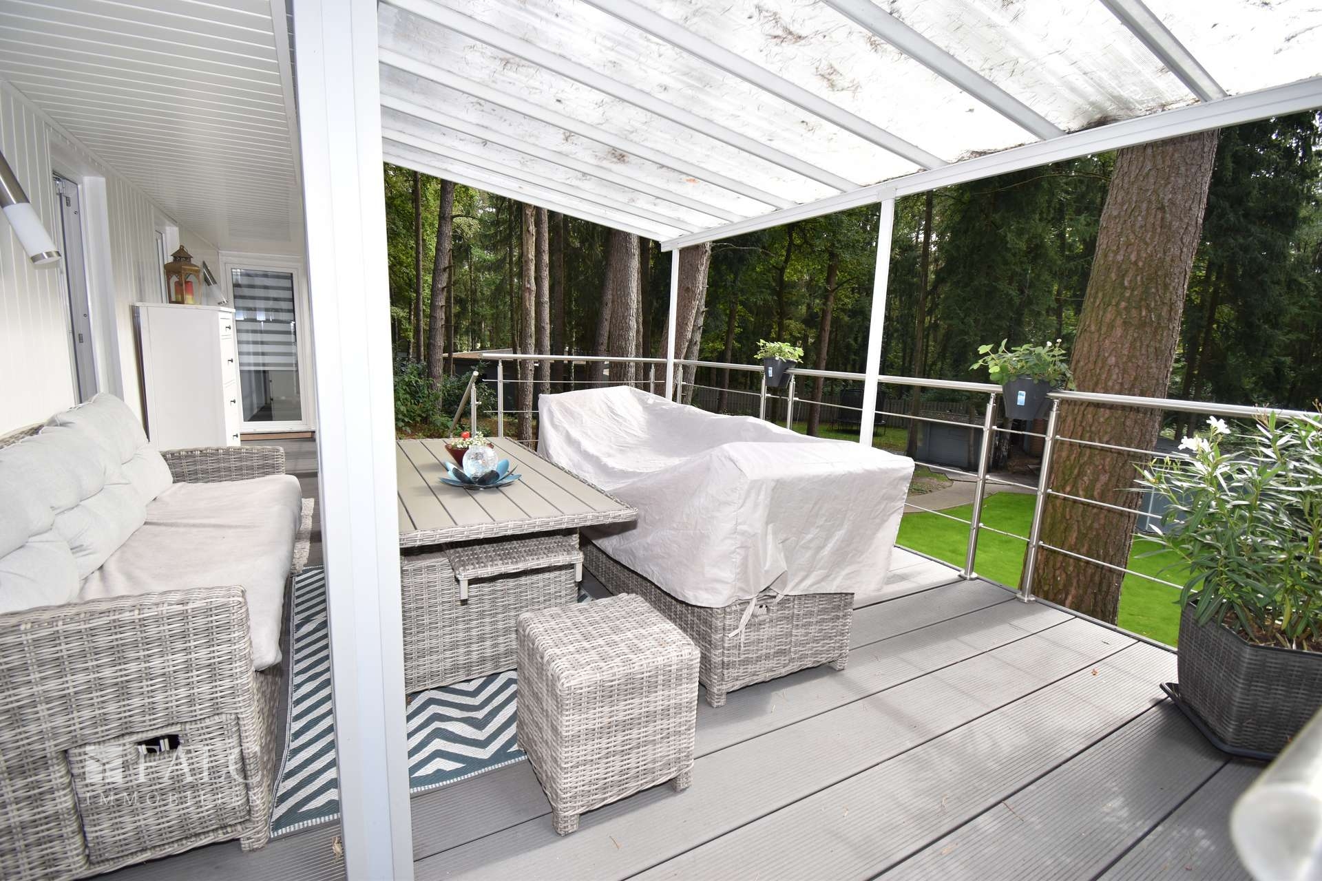 Die großzügige Gartenfläche bietet vielfältige Gestaltungsmöglichkeiten. Zwei große, überdachte Terrassen hinter dem Haus laden zum Genießen der Ferienzeit ein.