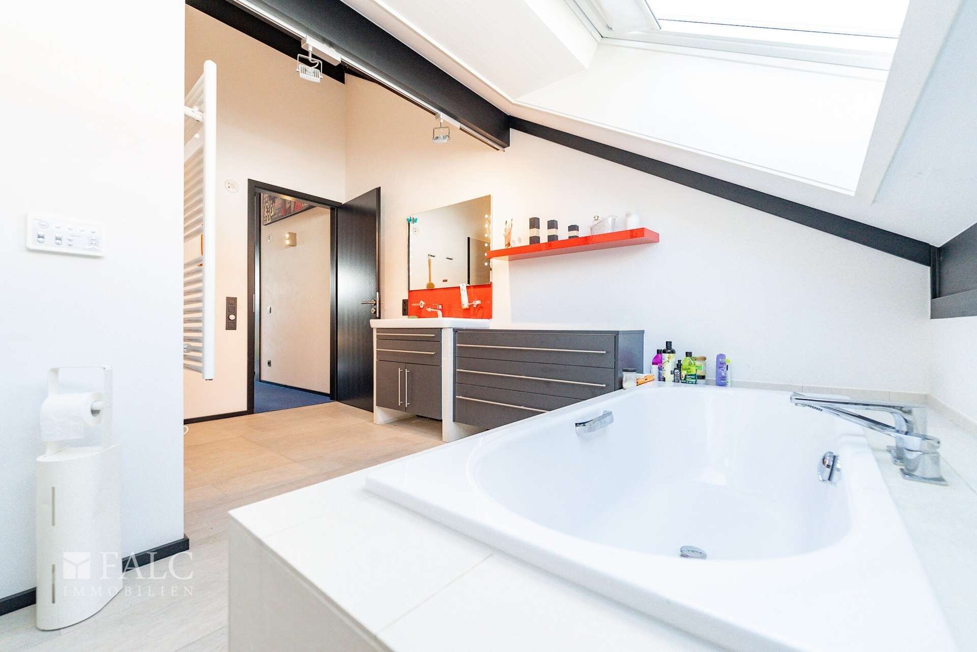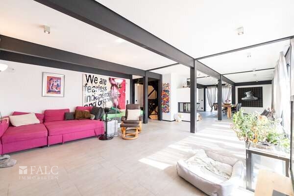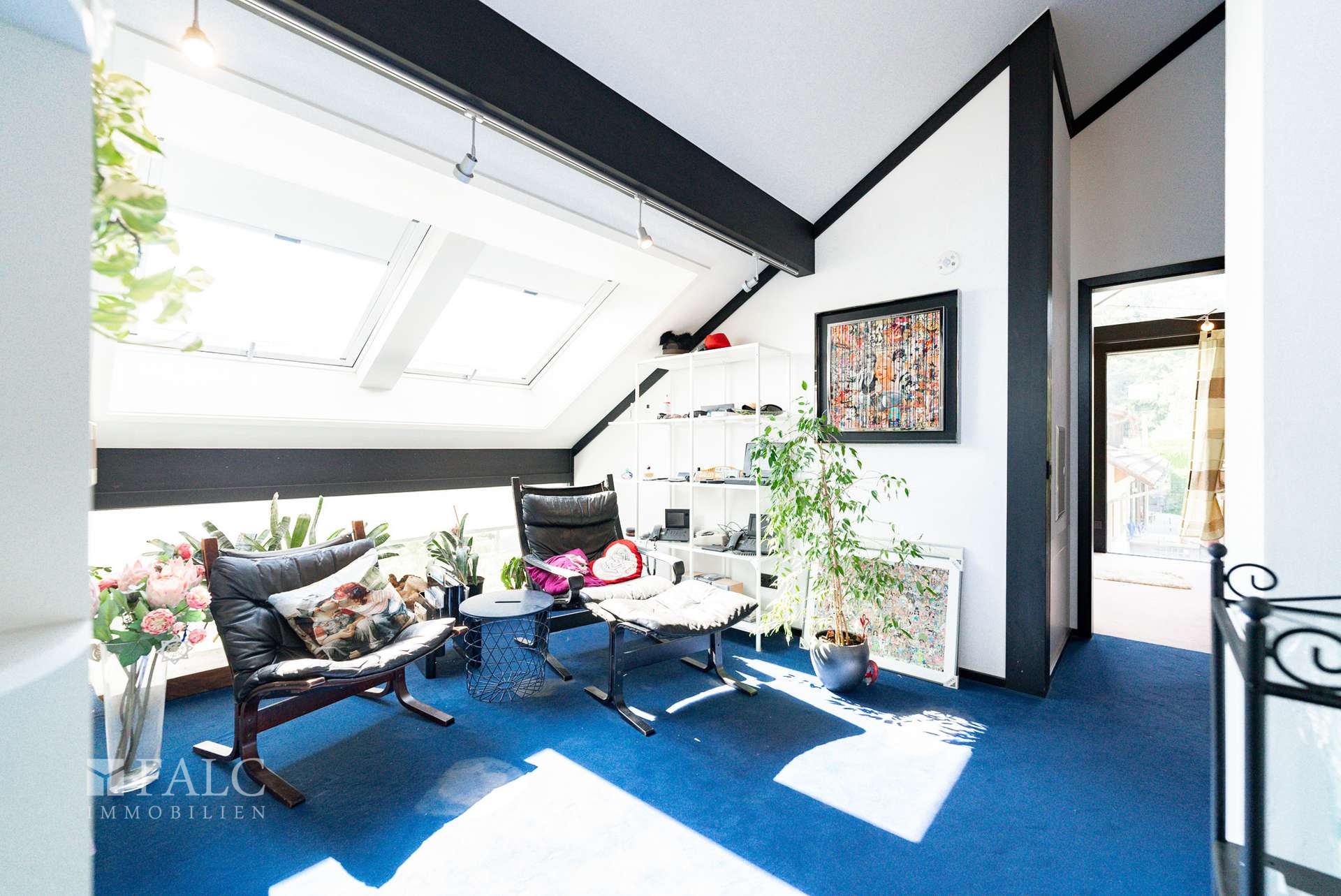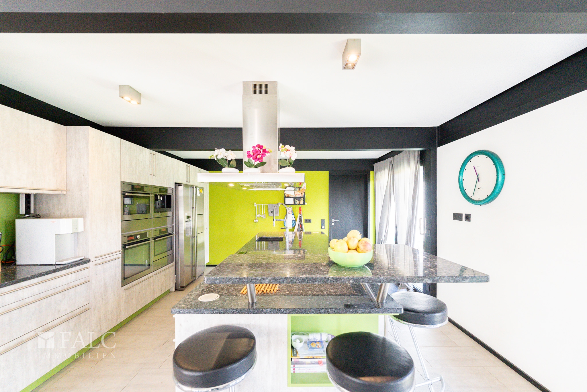 Wohn- und Nutzfläche Auf ca. 332 m² Wohnfläche plus 158 m² Nutzfläche verteilen sich drei Etagen, die bequem über eine Innentreppe erschlossen sind. Das Haus befindet sich in sehr gutem Zustand und überzeugt mit hochwertiger Ausstattung inklusive moderner Smart-Home-Technik (Anschaffungskosten über 100.000 €). Ein Aufzug ist vorhanden.