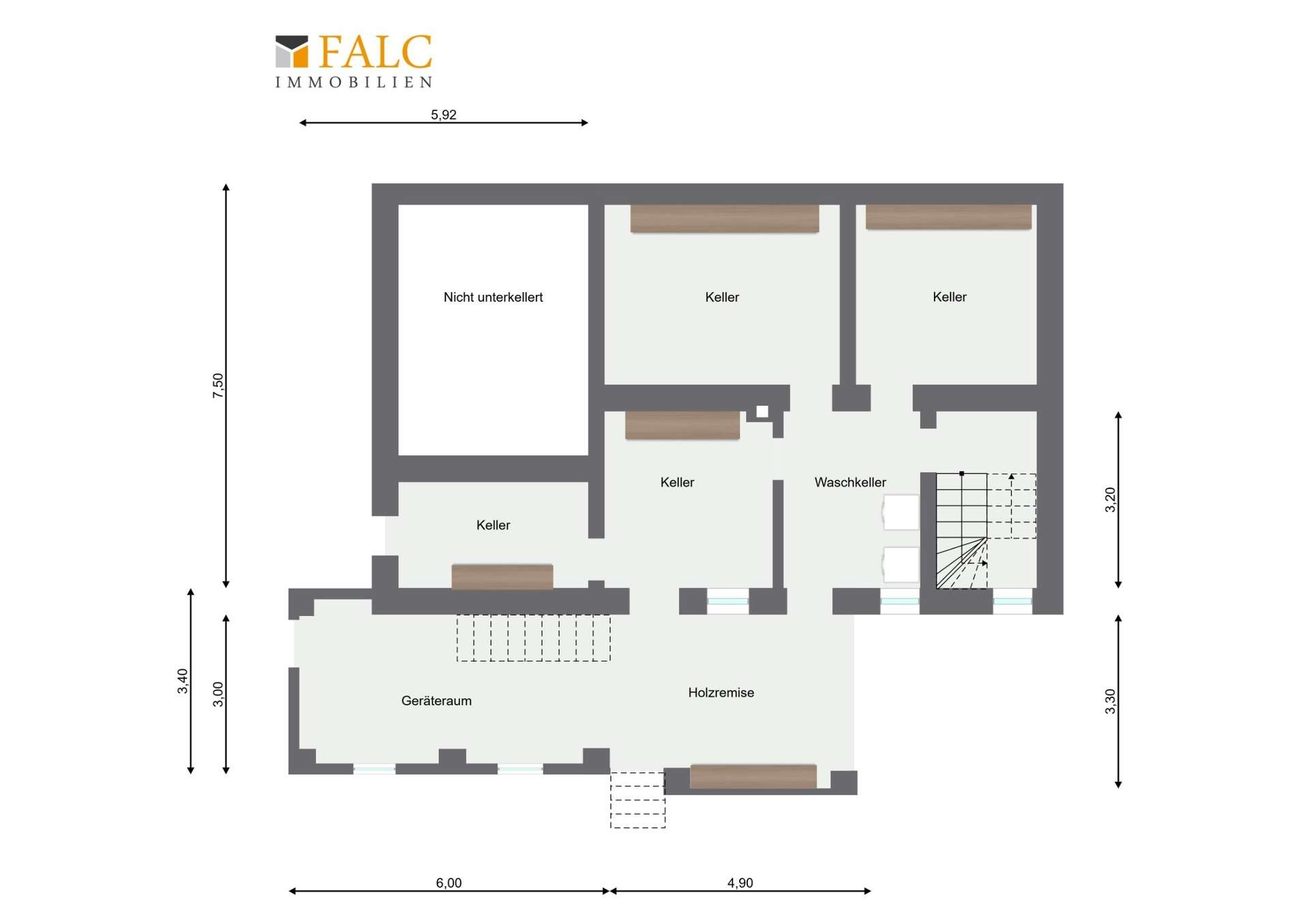 Das Haus ist voll unterkellert und bietet insgesamt sechs Kellerräume, die individuell nutzbar sind – ob als Hobbyraum, Werkstatt, Vorratskammer oder Waschküche. Der Zugang zum Keller ist sowohl über die Diele im Erdgeschoss als auch direkt vom Garten aus möglich.