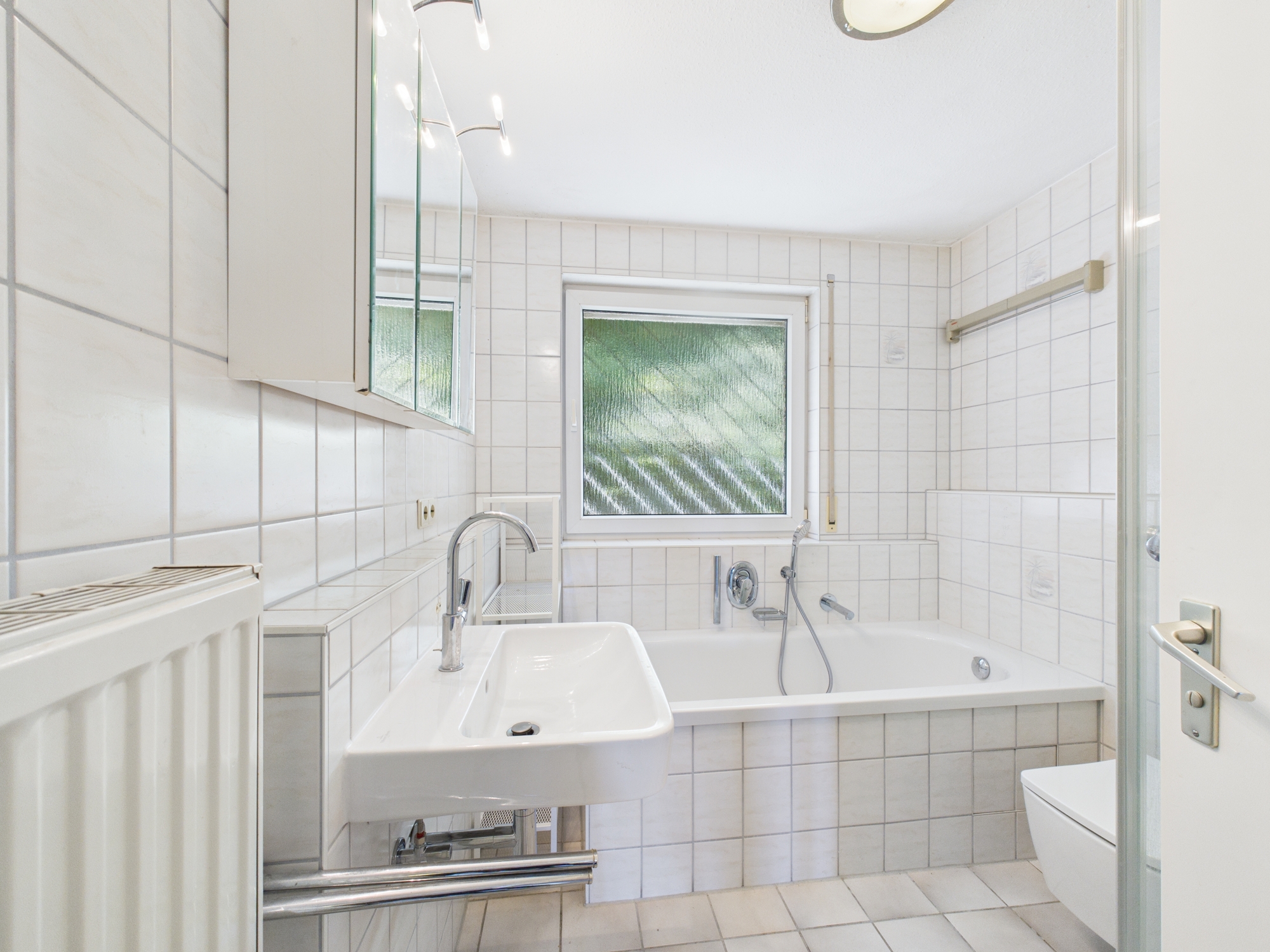 Diese helle 3-Zimmer-Wohnung im 1. Obergeschoss bietet dank ihres durchdachten Grundrisses viel Platz. Eine Garage sowie eine Einbauküche runden das Angebot ab.