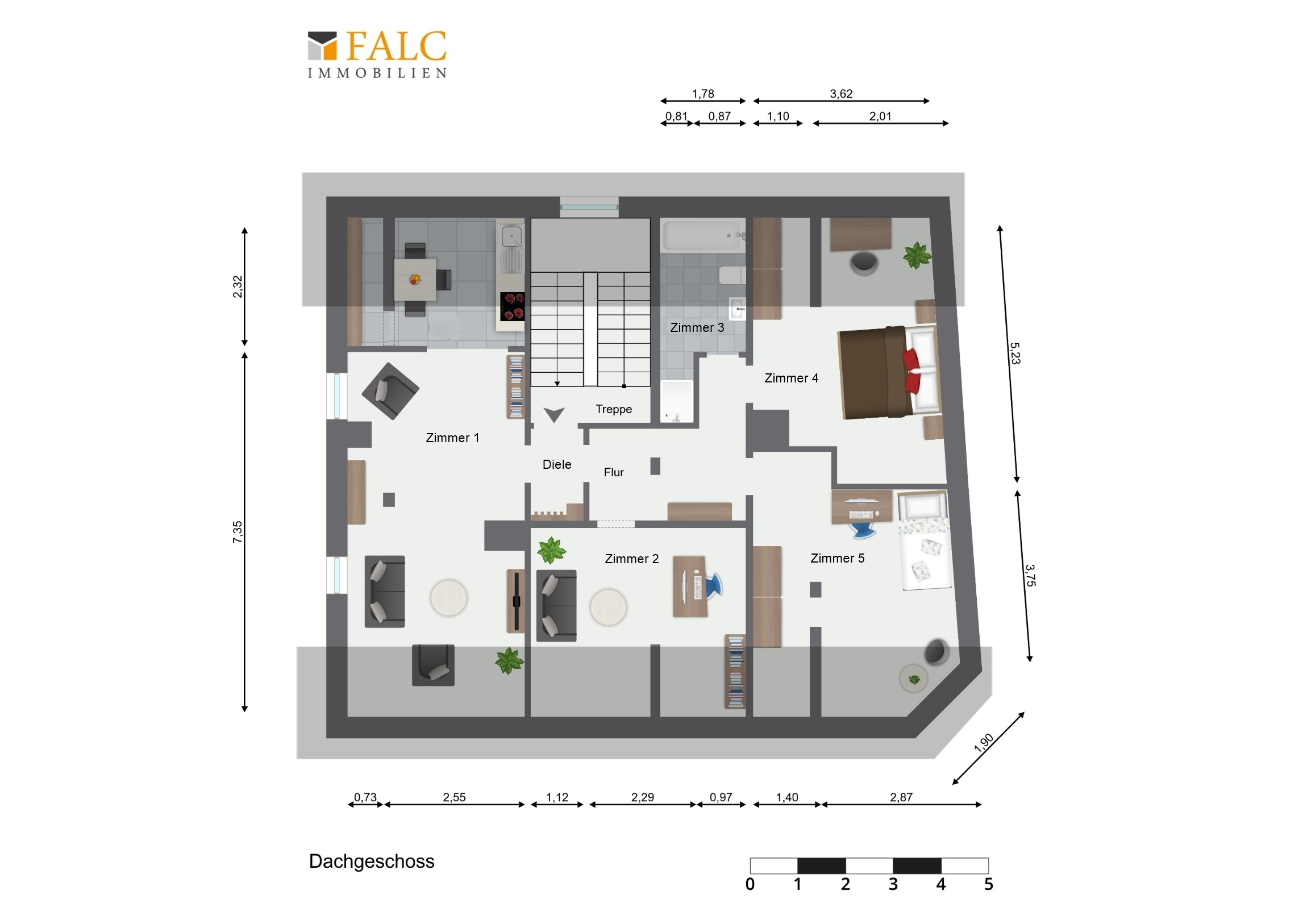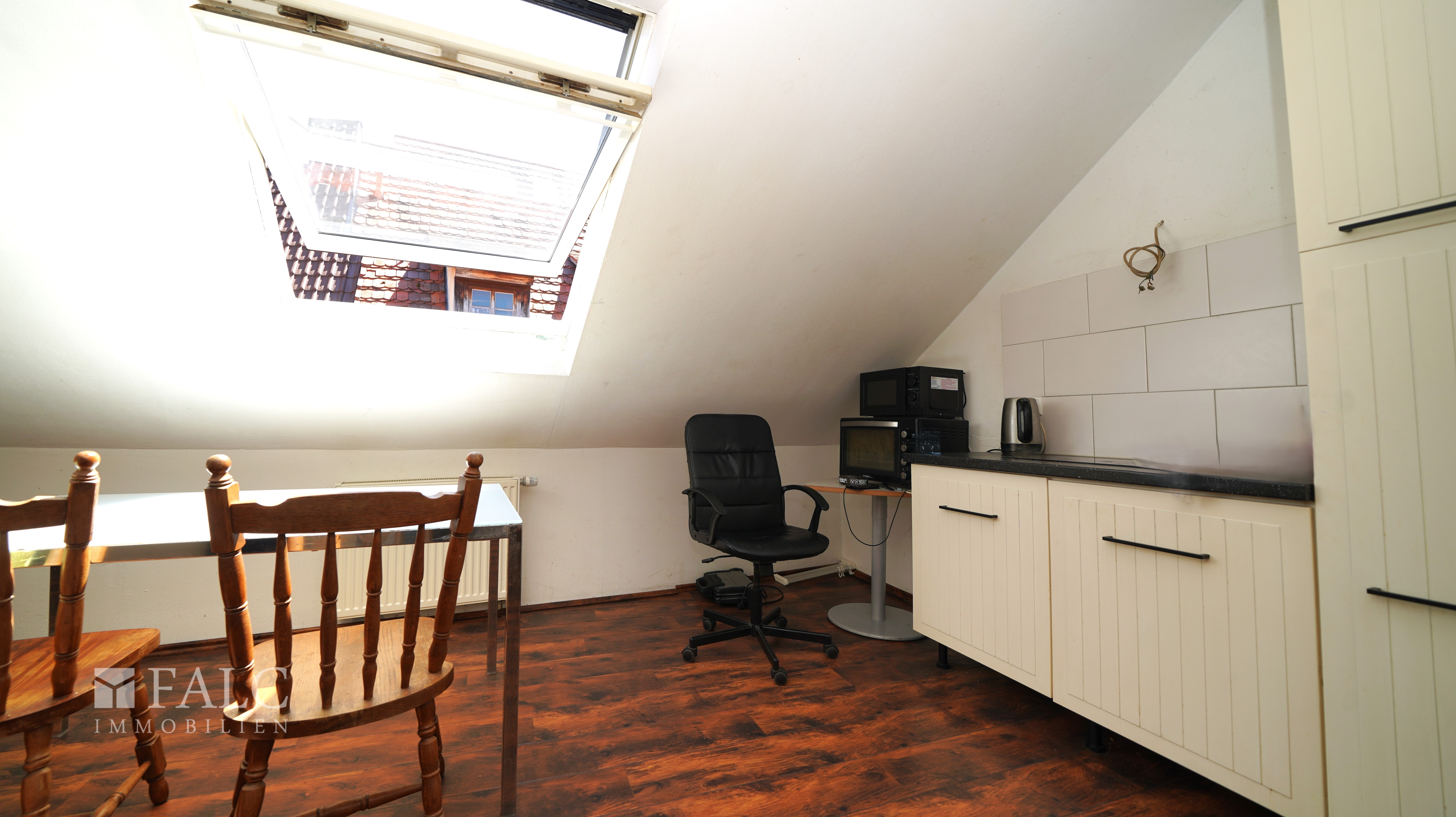 Das Dachgeschoss umfasst weitere Räumlichkeiten. Hier werden Sie von ausreichend vielen Zimmern, einer Küche sowie einem eigenen Bad mit WC auf dieser Etage empfangen.
