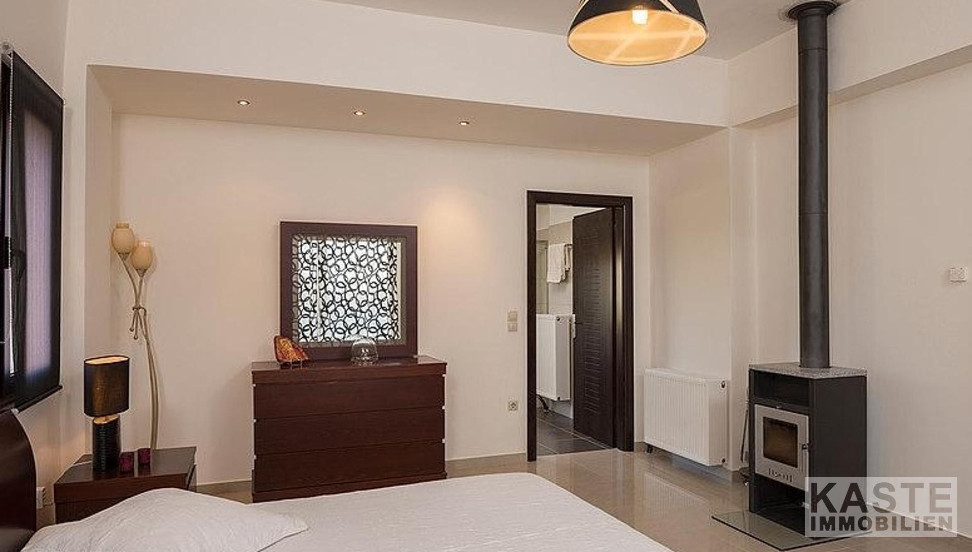Hochwertige Materialien, Armaturen und Einrichtungsgegenstände sind die Hauptmerkmale dieser Immobilie; der Eigentümer ist Architekt und hat jedem einzelnen Detail besondere Aufmerksamkeit geschenkt. Außerdem bieten alle Zimmer und Bereiche des Anwesens einen atemberaubenden Meerblick über die Bucht von Chania.