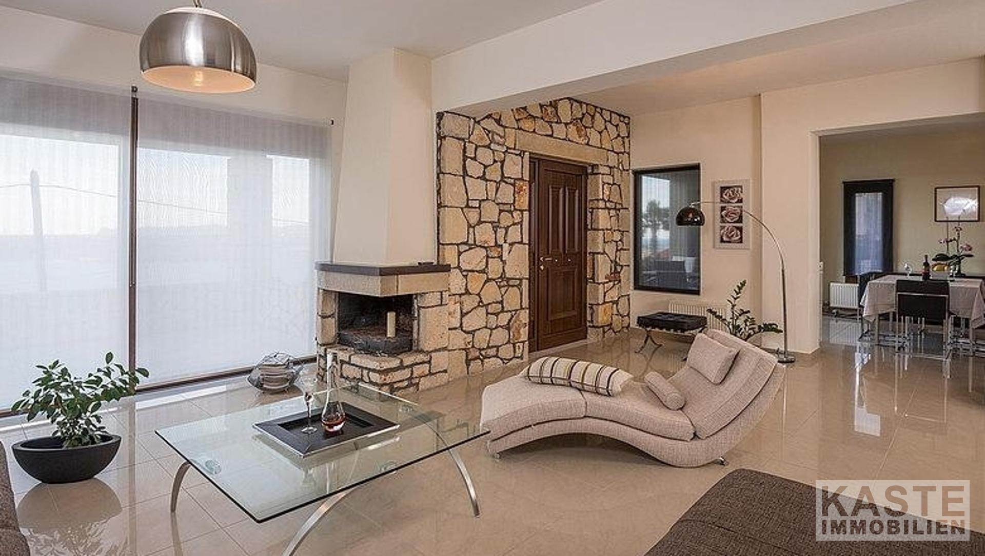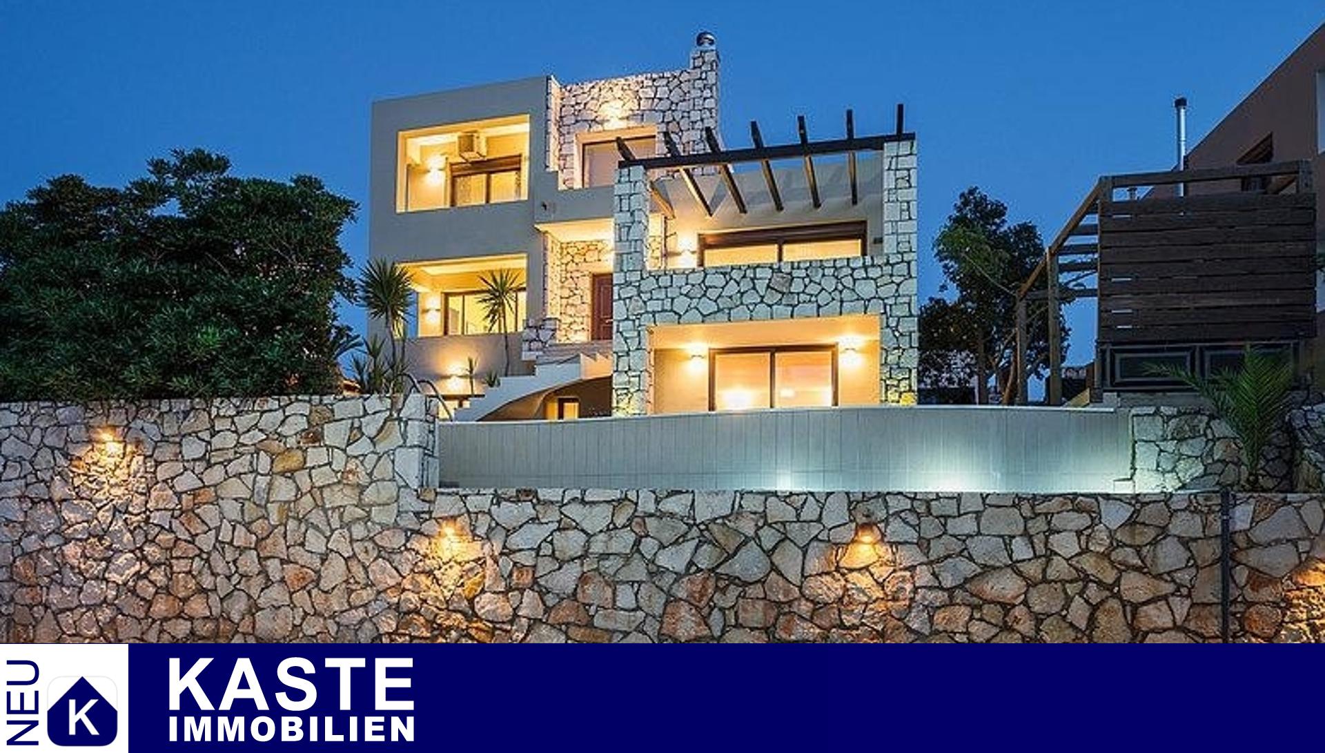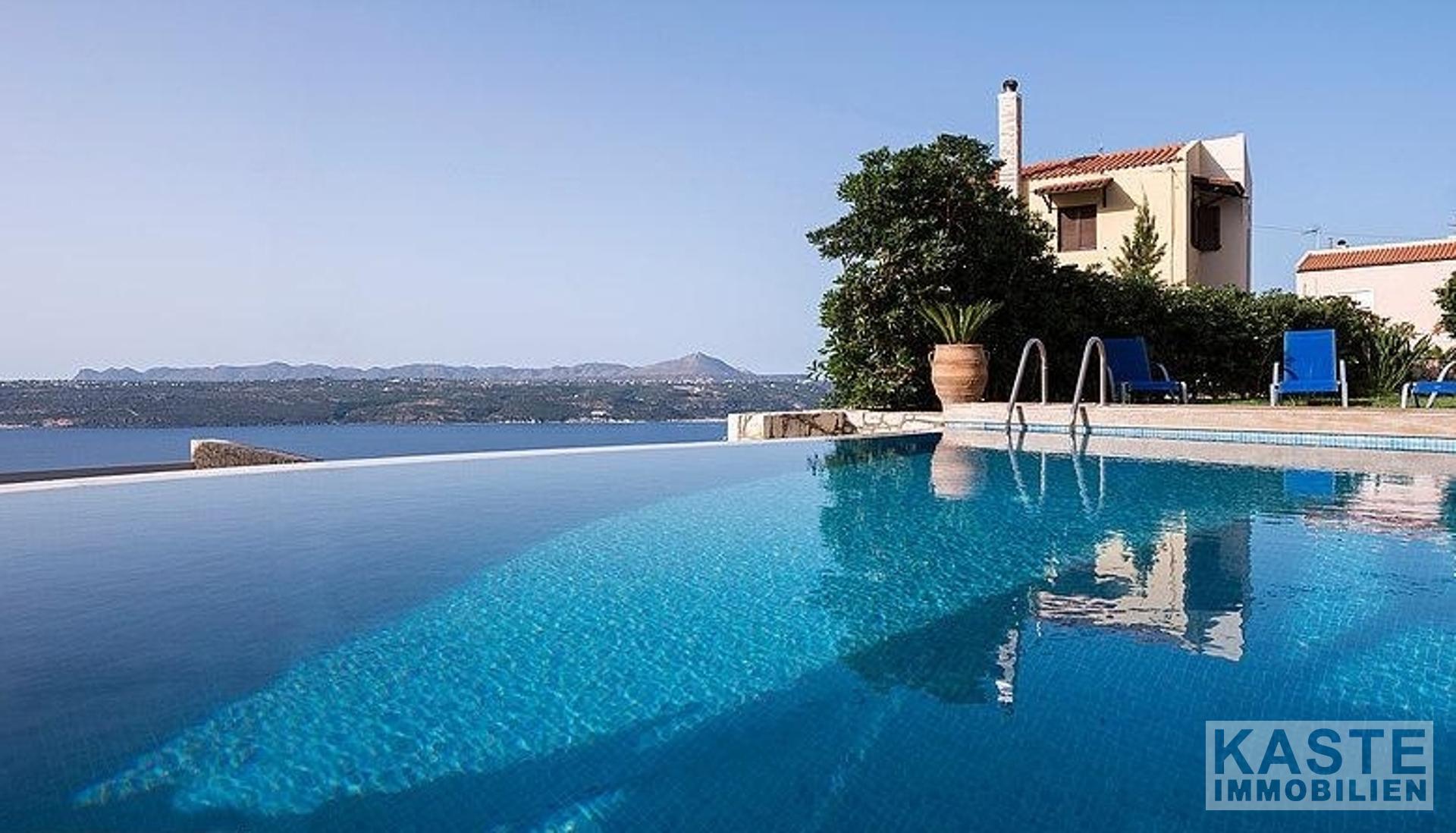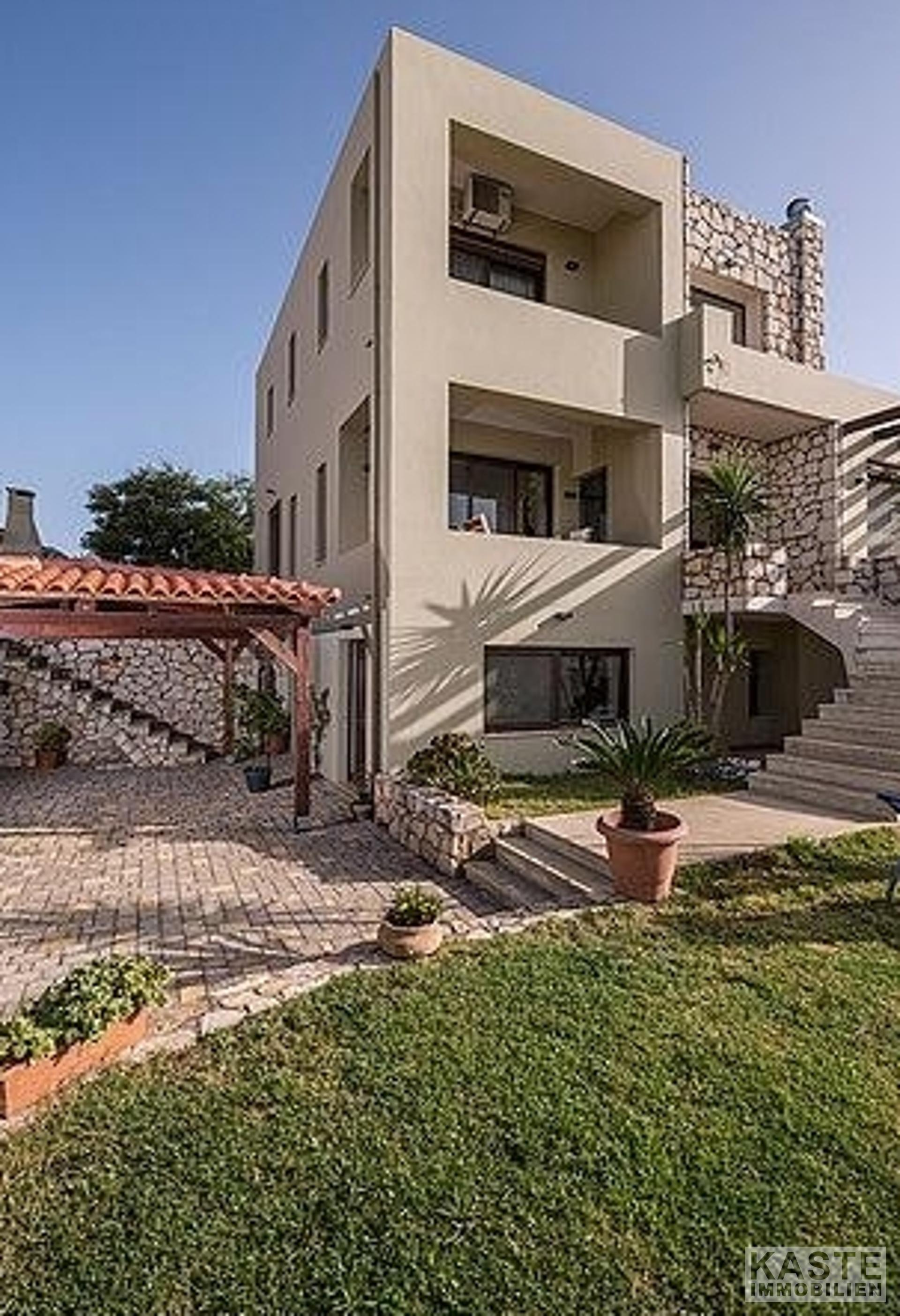 Hochwertige Materialien, Armaturen und Einrichtungsgegenstände sind die Hauptmerkmale dieser Immobilie; der Eigentümer ist Architekt und hat jedem einzelnen Detail besondere Aufmerksamkeit geschenkt. Außerdem bieten alle Zimmer und Bereiche des Anwesens einen atemberaubenden Meerblick über die Bucht von Chania.
