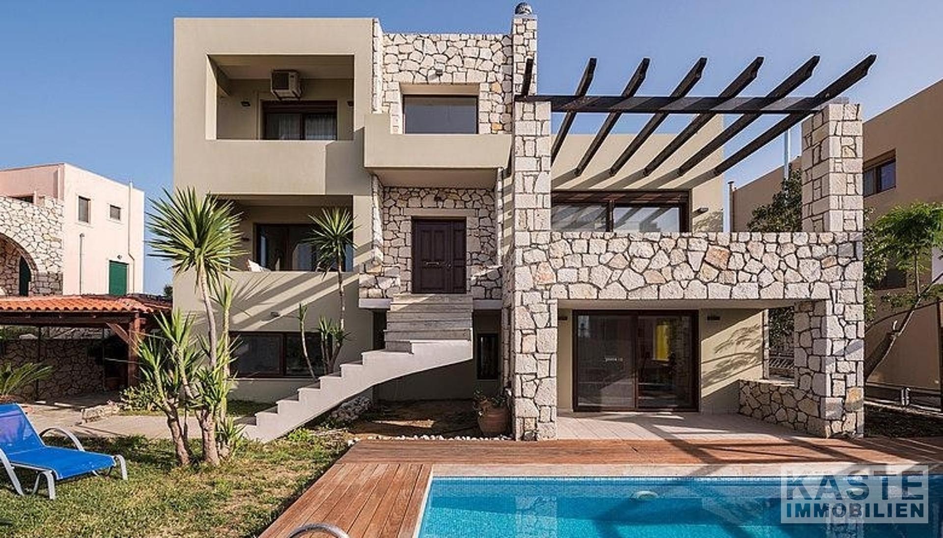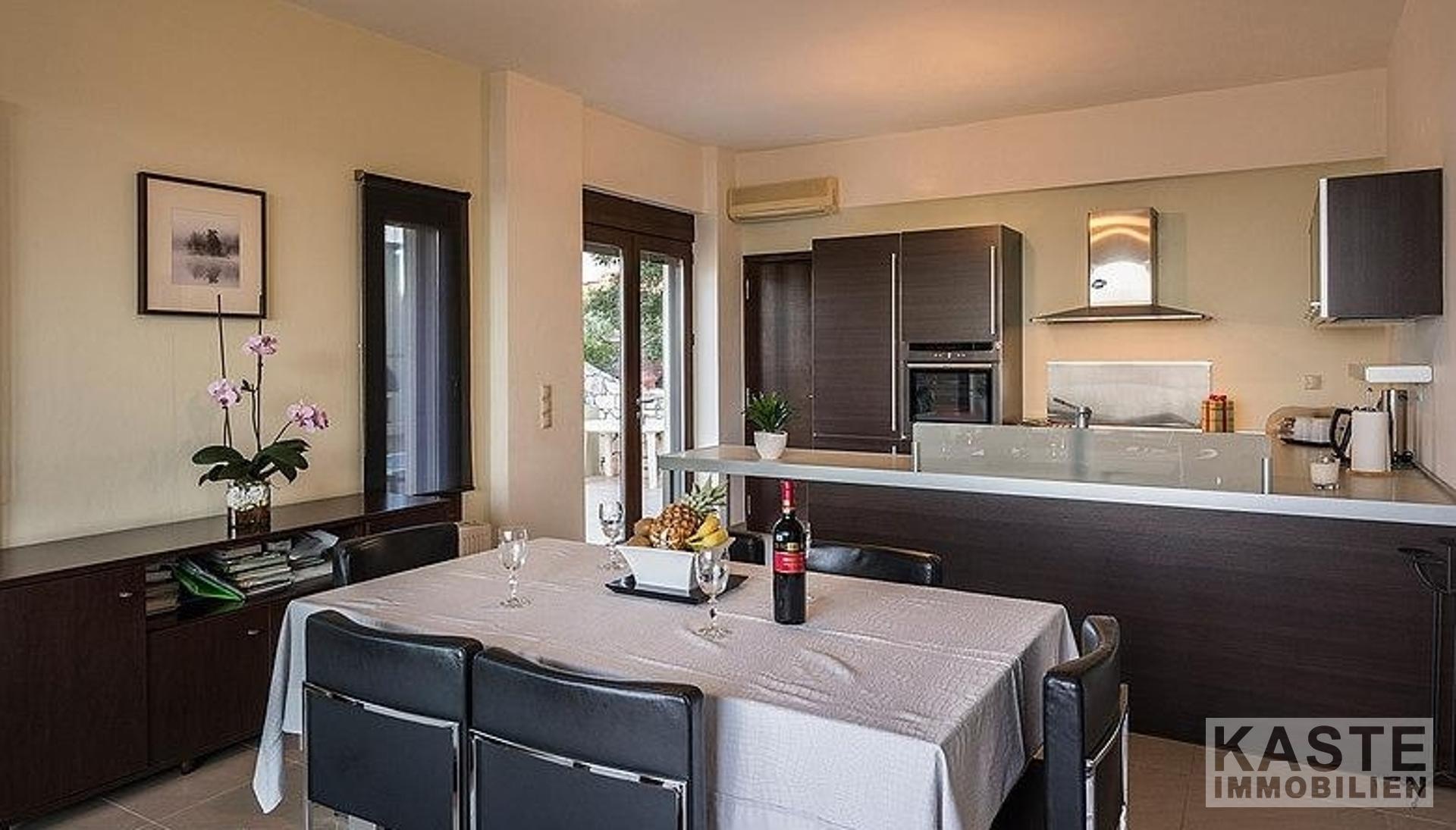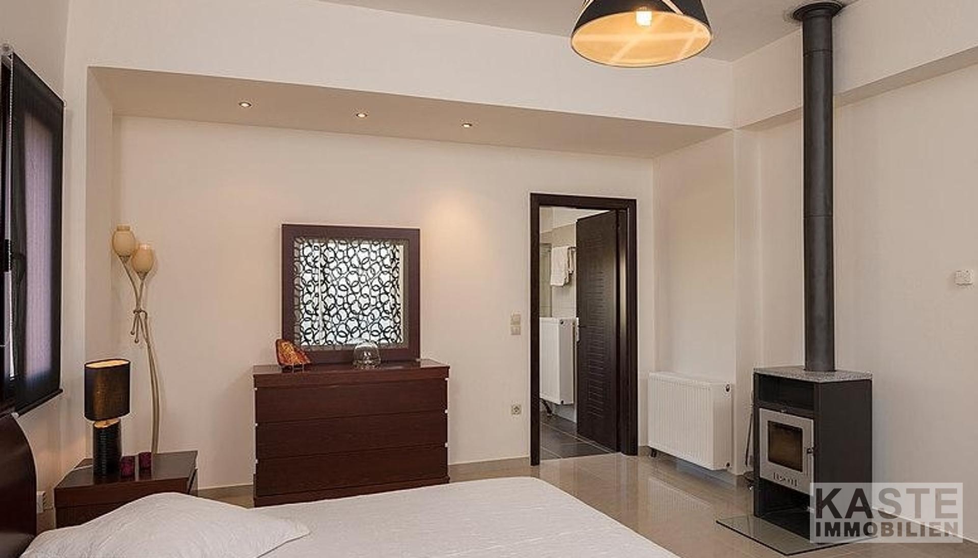 Hochwertige Materialien, Armaturen und Einrichtungsgegenstände sind die Hauptmerkmale dieser Immobilie; der Eigentümer ist Architekt und hat jedem einzelnen Detail besondere Aufmerksamkeit geschenkt. Außerdem bieten alle Zimmer und Bereiche des Anwesens einen atemberaubenden Meerblick über die Bucht von Chania.