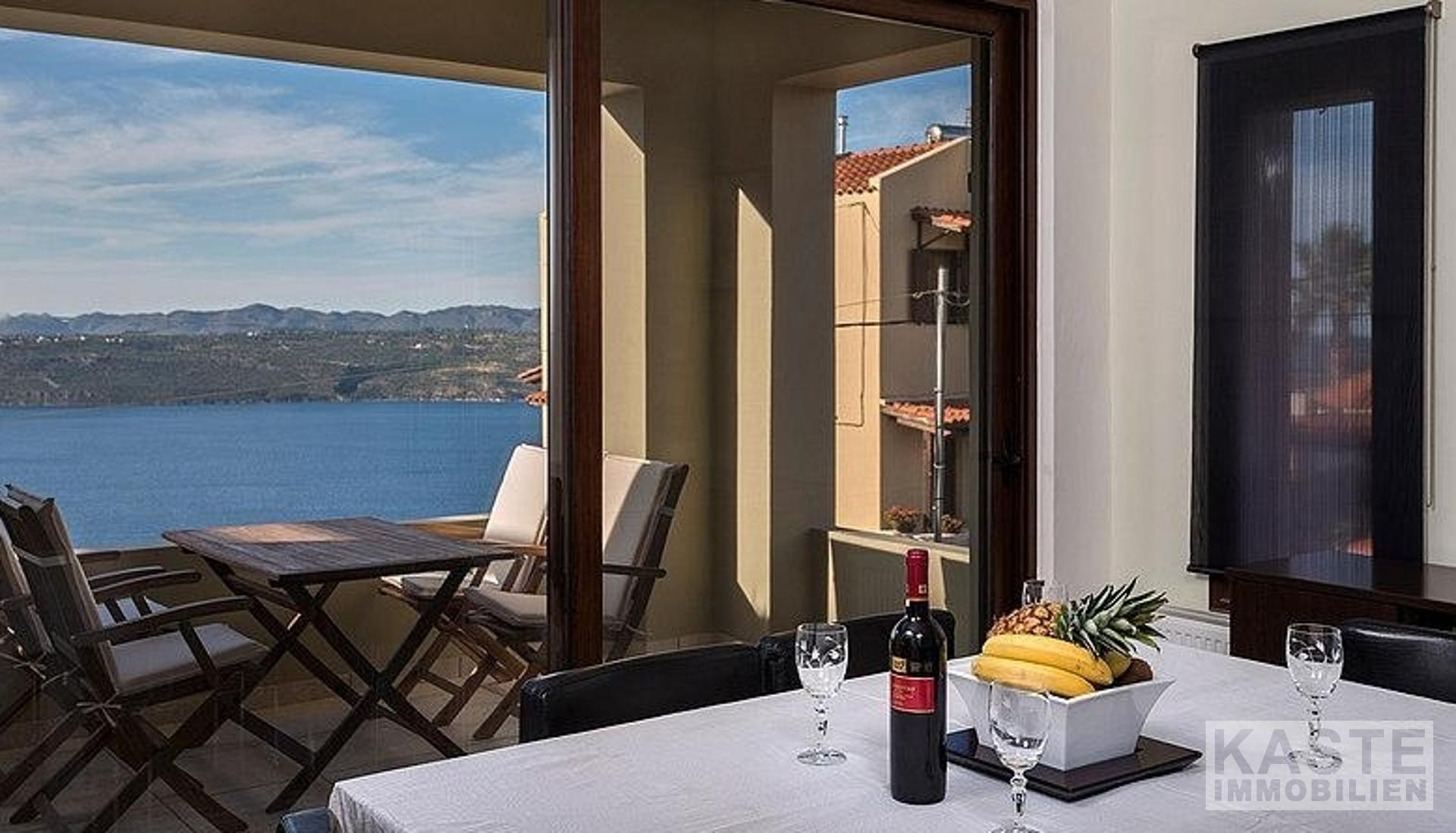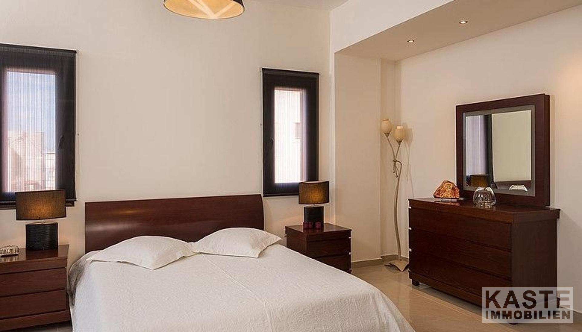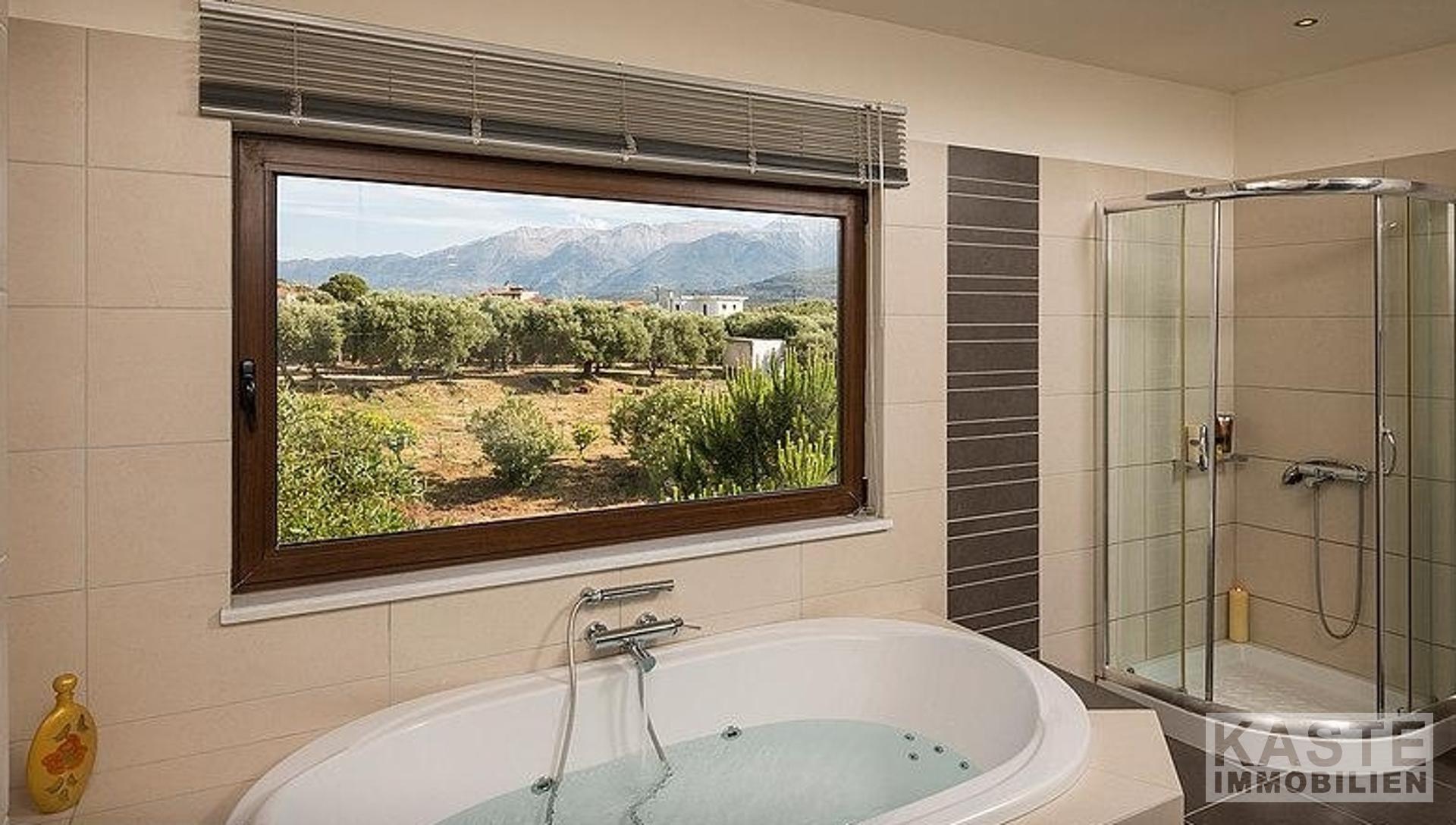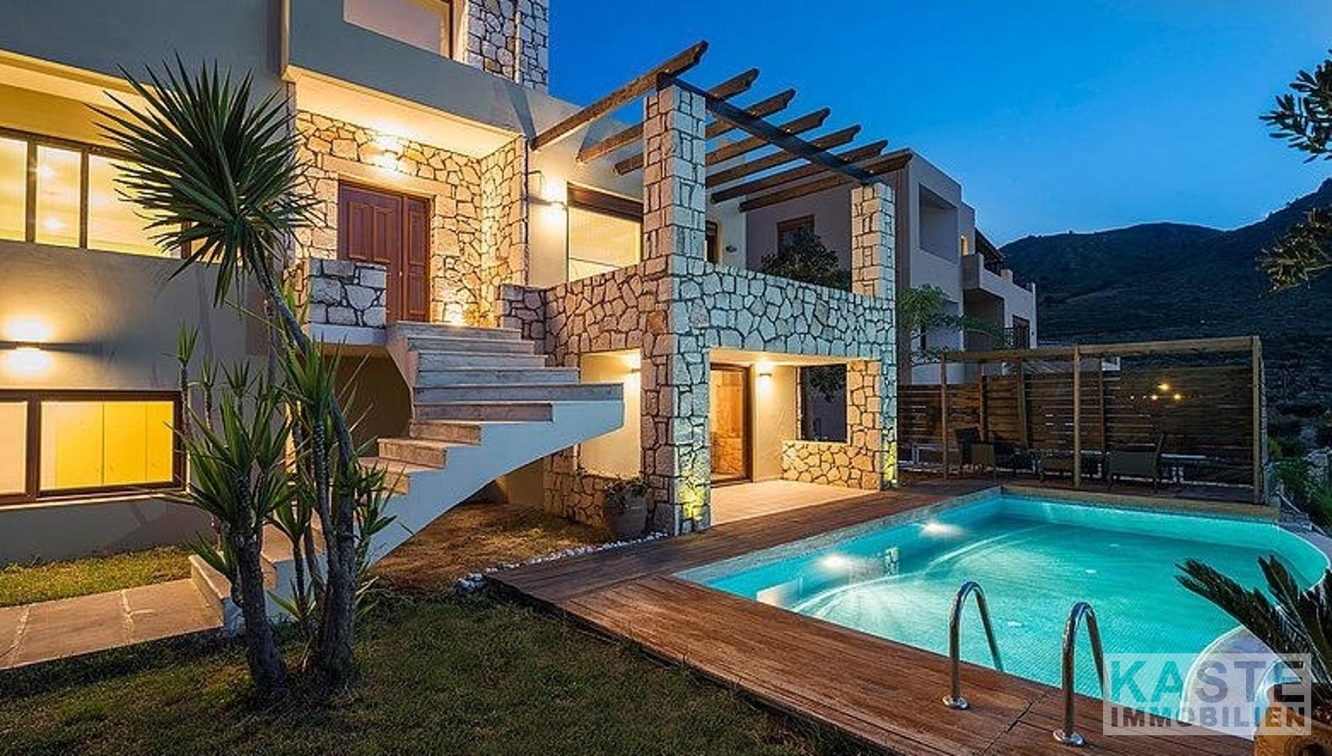 Hochwertige Materialien, Armaturen und Einrichtungsgegenstände sind die Hauptmerkmale dieser Immobilie; der Eigentümer ist Architekt und hat jedem einzelnen Detail besondere Aufmerksamkeit geschenkt. Außerdem bieten alle Zimmer und Bereiche des Anwesens einen atemberaubenden Meerblick über die Bucht von Chania.