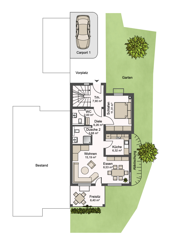 Auf einem kompakten Grundstück von 264,6 m² erwarten Sie drei attraktive Wohneinheiten, die unterschiedliche Bedürfnisse bedienen und damit sowohl als renditestarke Kapitalanlage als auch zur teilweisen Eigennutzung interessant sind. Die 2,5-Zimmer-Souterrainwohnung (UG) überzeugt durch ihren gut nutzbaren Grundriss.. Die 2-Zimmer-Wohnung im Erdgeschoss bietet eine separate Küche sowie einen Freisitz mit Gartennutzung – ideal für Singles, Paare oder Eigennutzer, die Wert auf einen kleinen Außenbereich legen. Das Highlight des Hauses ist die großzügige 4,5-Zimmer-Maisonette-Wohnung im Obergeschoss, die sich über zwei Etagen erstreckt und mit einem überdachten Balkon sowie einem Carport-Stellplatz ausgestattet ist. Alle drei Wohnungen sind aktuell vermietet und bieten somit ein solides Einkommen.