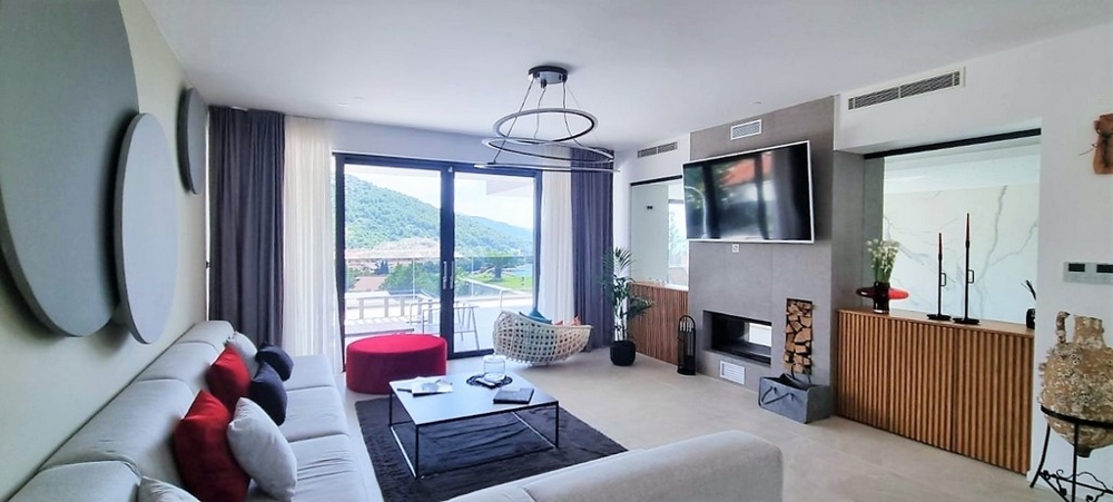 Klimatisierung, Fußbodenheizung, Grill, Pool, Sauna, Fitnessraum, Möblierung, Parkplätze, Konoba, Terrasse, Balkon, Sommerküche, Meerblick, Spielplatz, etc.