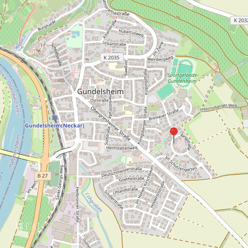 Gundelsheim am Neckar ist eine charmante Kleinstadt im Landkreis Heilbronn in Baden-Württemberg mit rund 7.500 Einwohnern. Eingebettet zwischen Weinbergen und dem Neckar, bietet der Ort eine attraktive Mischung aus ländlicher Ruhe und guter Erreichbarkeit größerer Städte wie Heilbronn und Mosbach. Die verkehrstechnische Anbindung ist durch die Bundesstraße B27 sowie den Regionalbahnhof gewährleistet, der regelmäßige Verbindungen in die umliegende Region bietet.