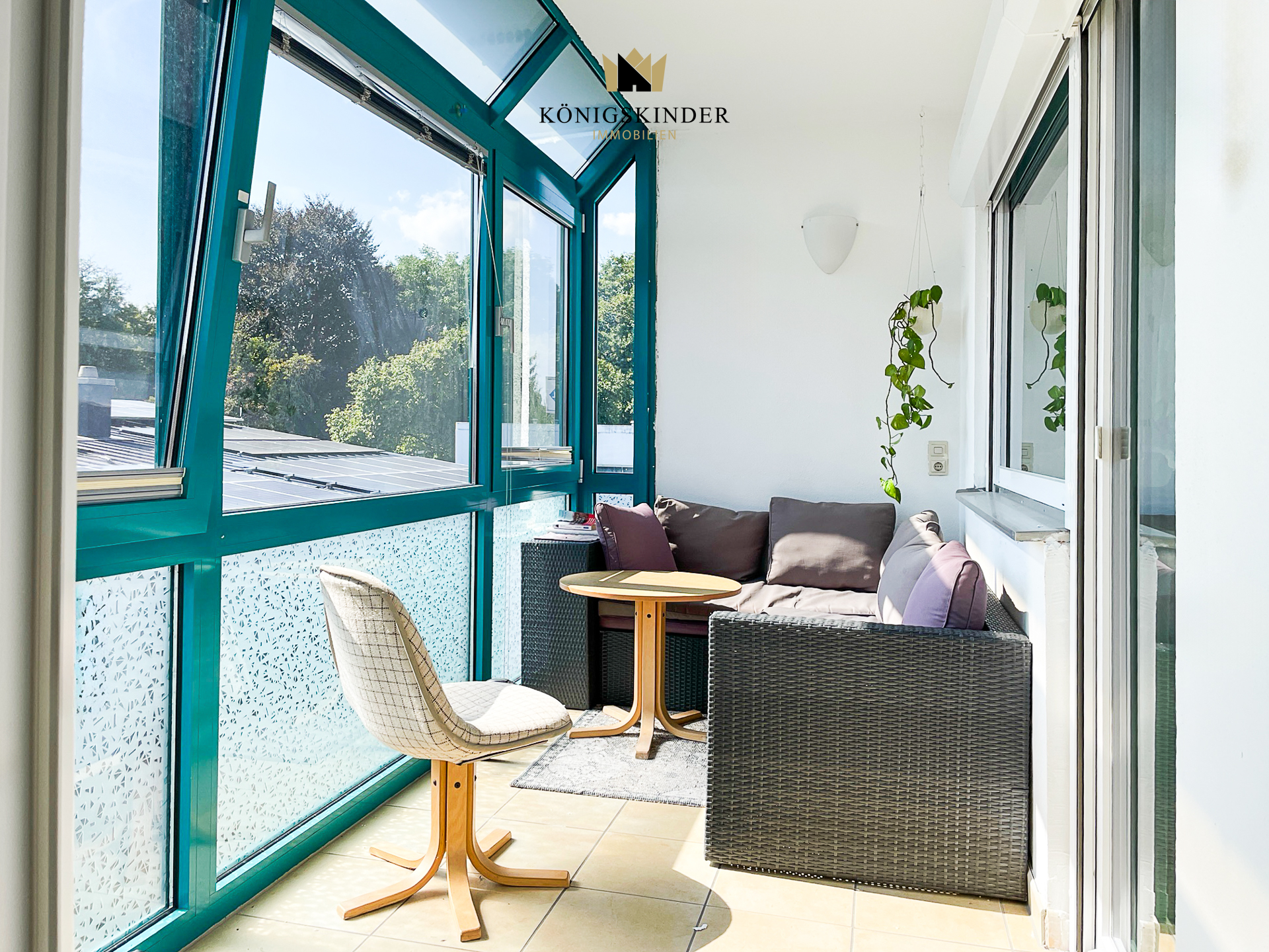 Geradeaus ist ein Schlafzimmer , ebenfalls mit Zugang zum Wintergarten.
