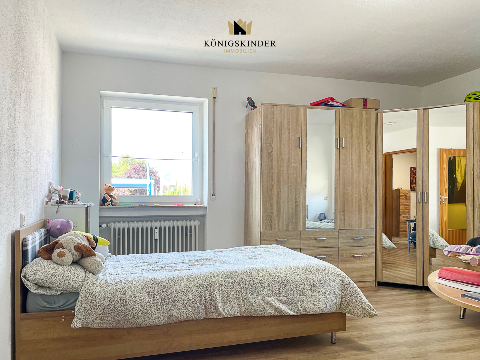 Daneben ist das Kinderzimmer mit zwei großen Fenstern.