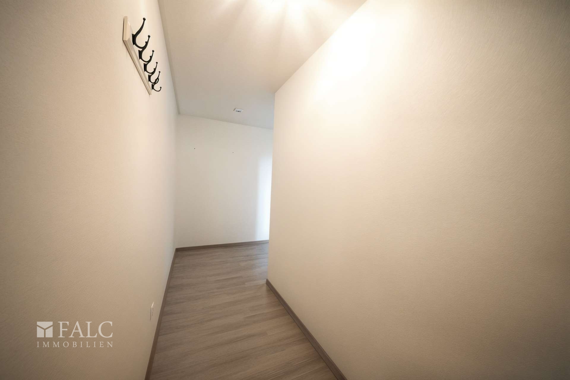 Sie betreten die Wohnung über den Flur, der als zentrale Verteilerzone funktioniert. Hier ist Platz für Garderobe und Schuhschrank, die Wege in alle Räume sind kurz und logisch.