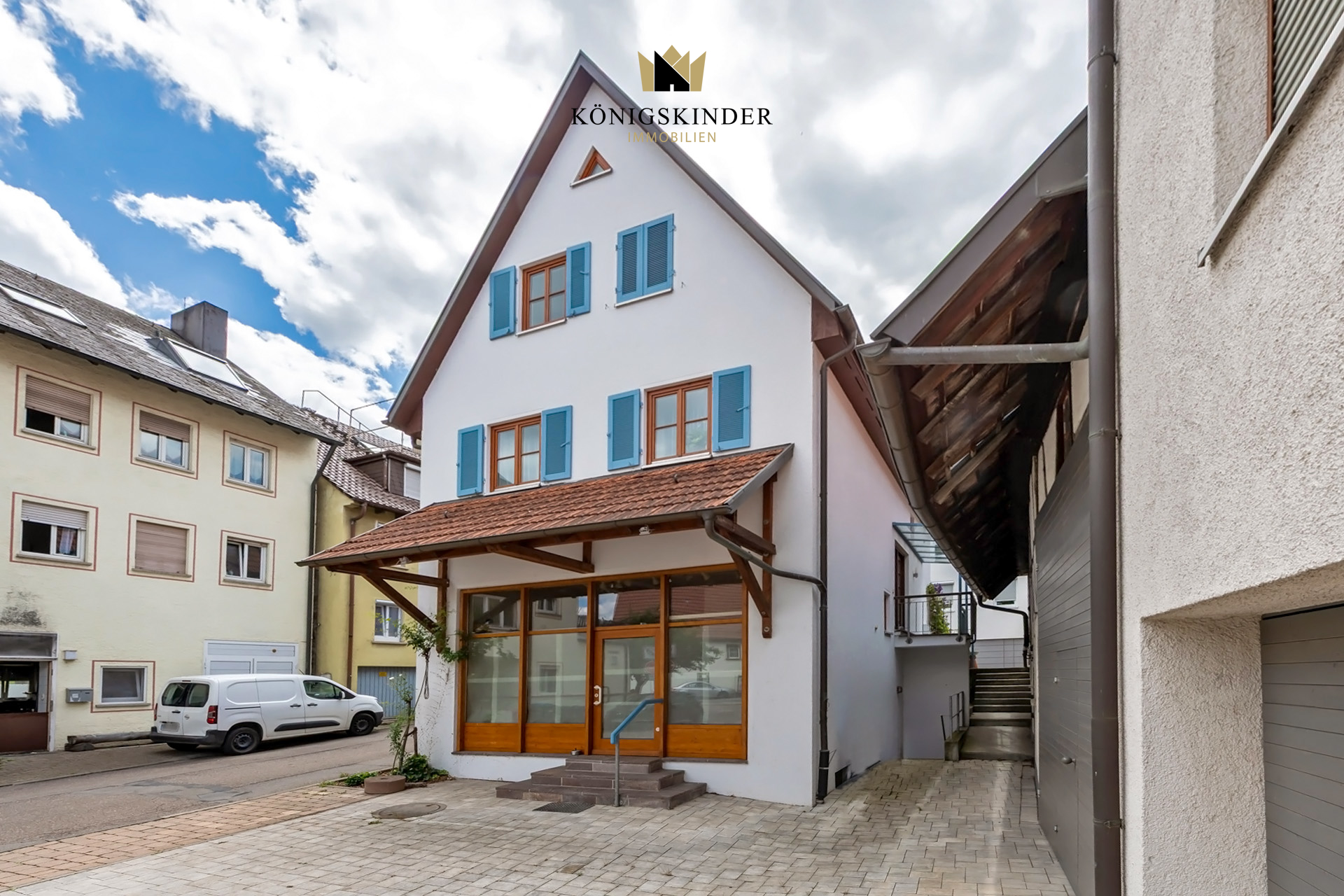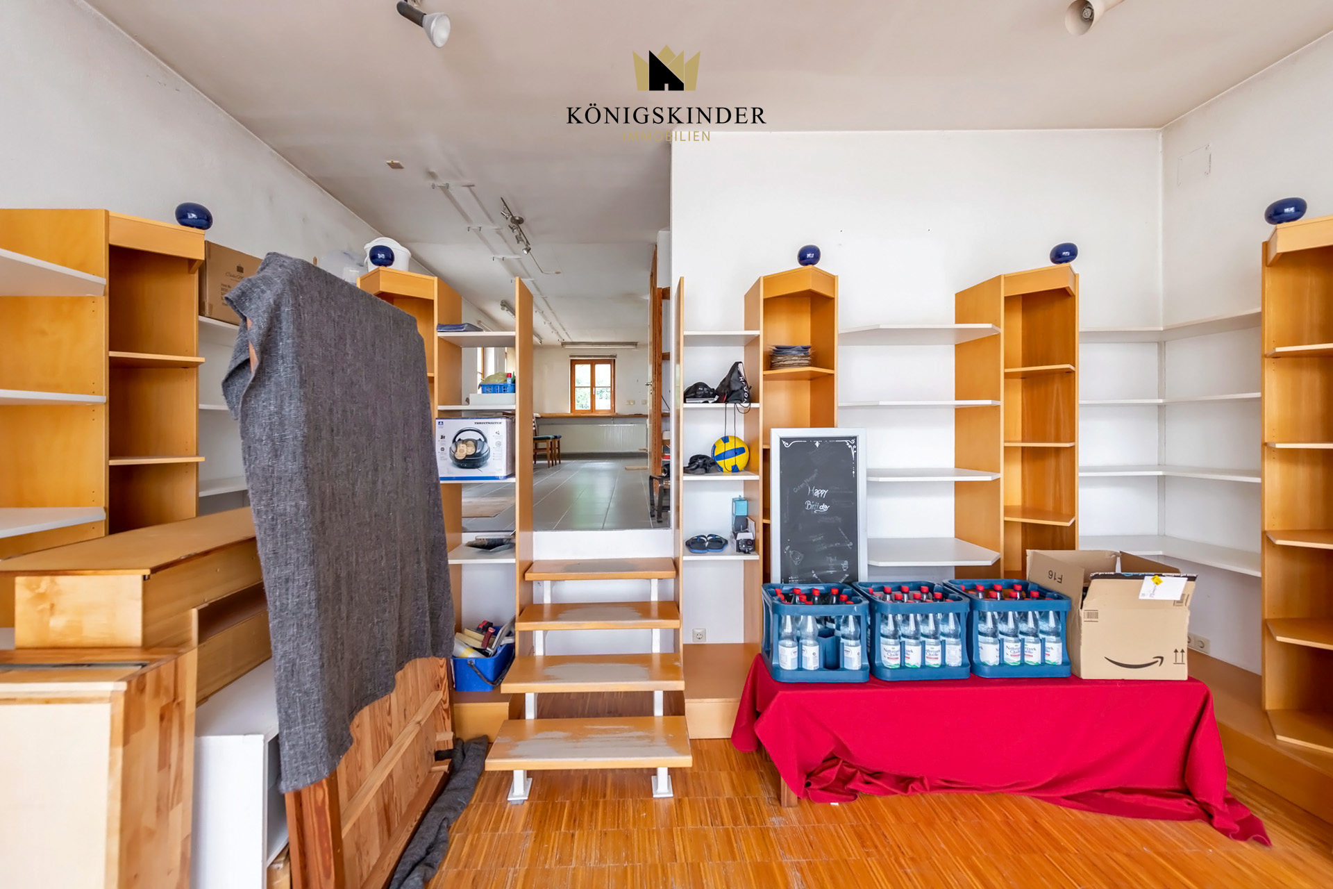 Im Erdgeschoss befindet sich derzeit eine als Laden vermietete Einheit mit großzügiger Fensterfront zur Straßenseite. Ein separater Eingang sorgt für eine klare Trennung zum Wohnbereich. Bei Bedarf lässt sich die Fläche auch problemlos zu zusätzlichem Wohnraum umgestalten.