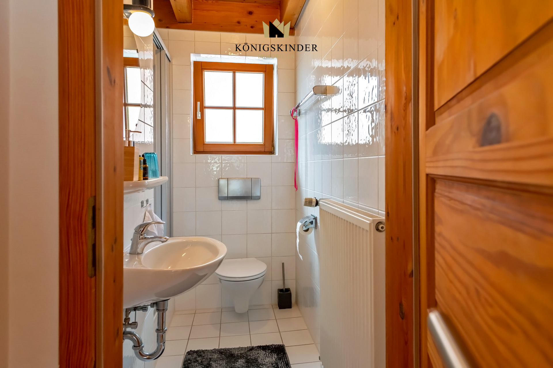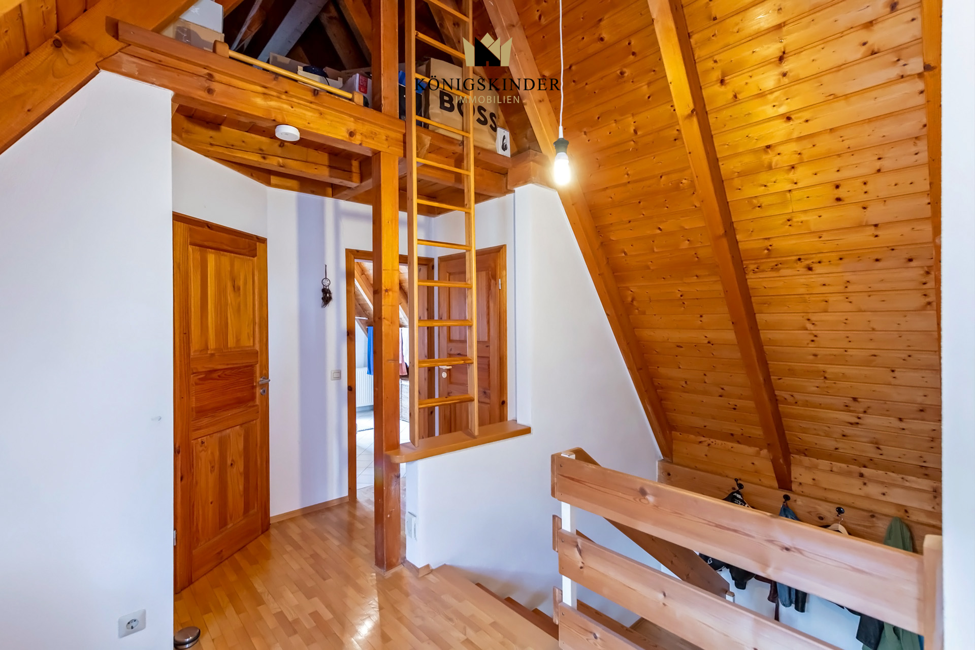 Im Dachgeschoss erwarten Sie zwei gemütliche Schlafzimmer, ein großzügiges Tageslichtbad sowie ein separates WC. Die Dachschrägen verleihen den Räumen eine warme, wohnliche Atmosphäre.